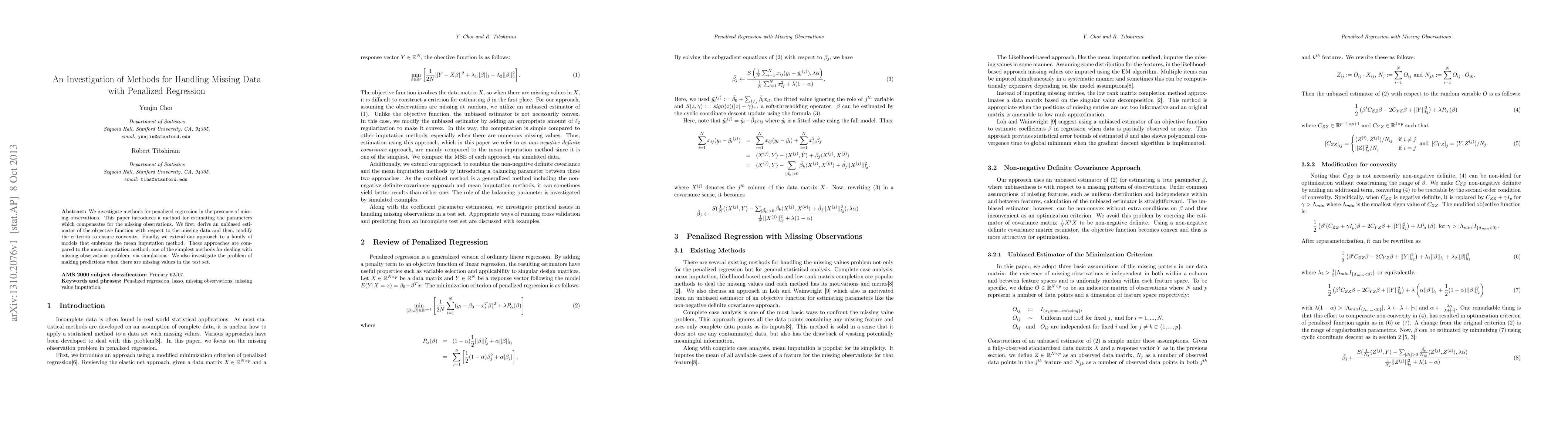 This paper investigates methods for penalized regression with missing data, introducing a new approach that compensates for missing observations and compares its performance to the mean imputation method via simulations.