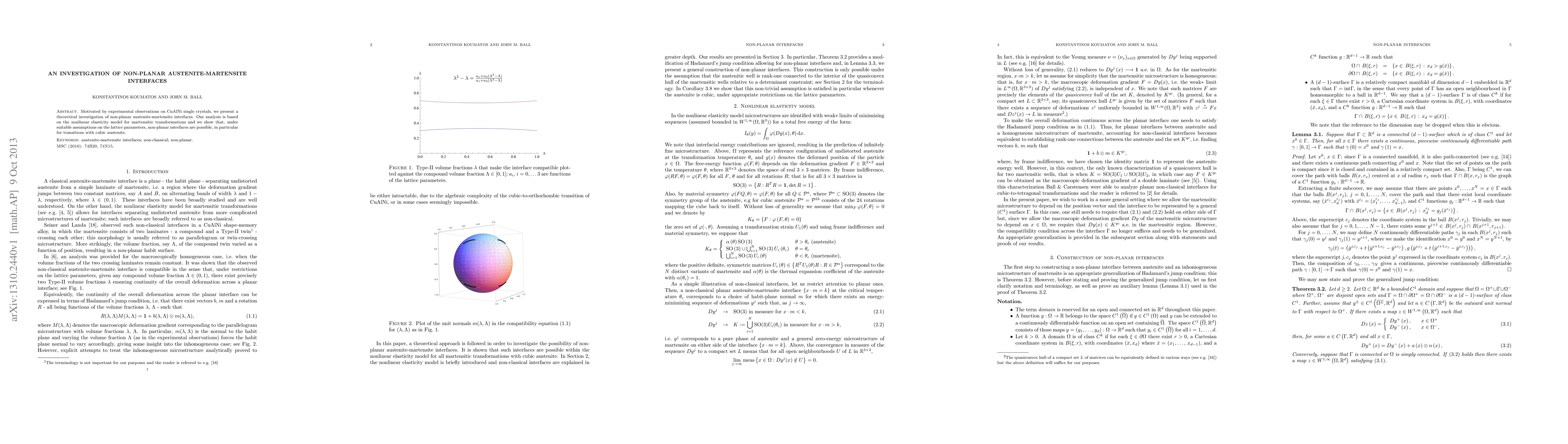 This paper investigates non-planar austenite-martensite interfaces using a nonlinear elasticity model, motivated by observations in CuAlNi crystals. It demonstrates that non-planar interfaces are feasible under specific lattice parameter conditions, particularly for cubic austenite transitions.
