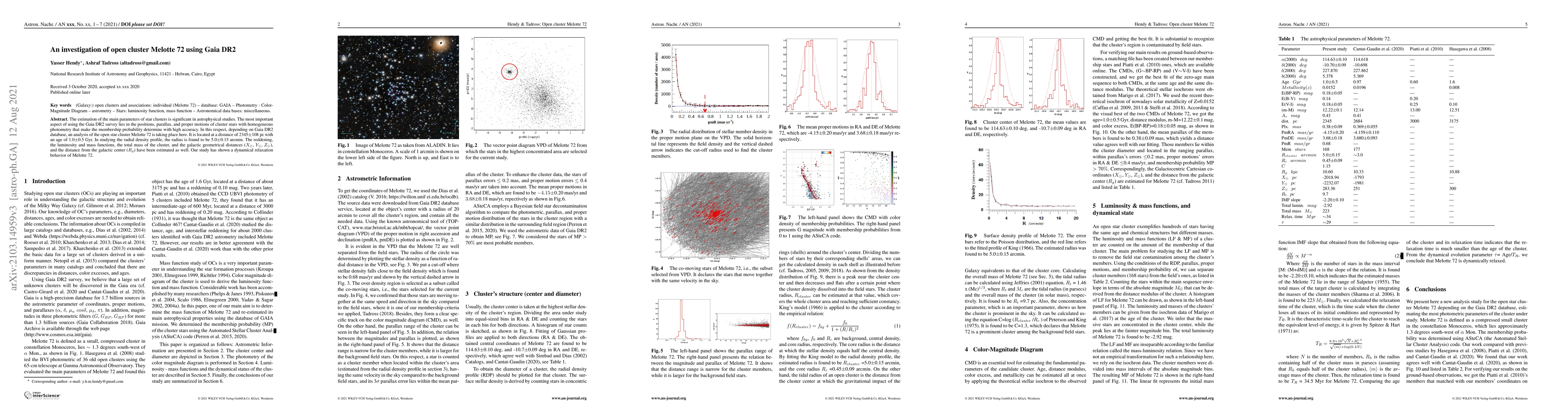 This study analyzes the open cluster Melotte 72 using Gaia DR2 data, determining its distance, age, and structural parameters, revealing a radius of 5.0±0.15 arcmin and an age of 1.0±0.5 Gyr, and indicating dynamical relaxation behavior.