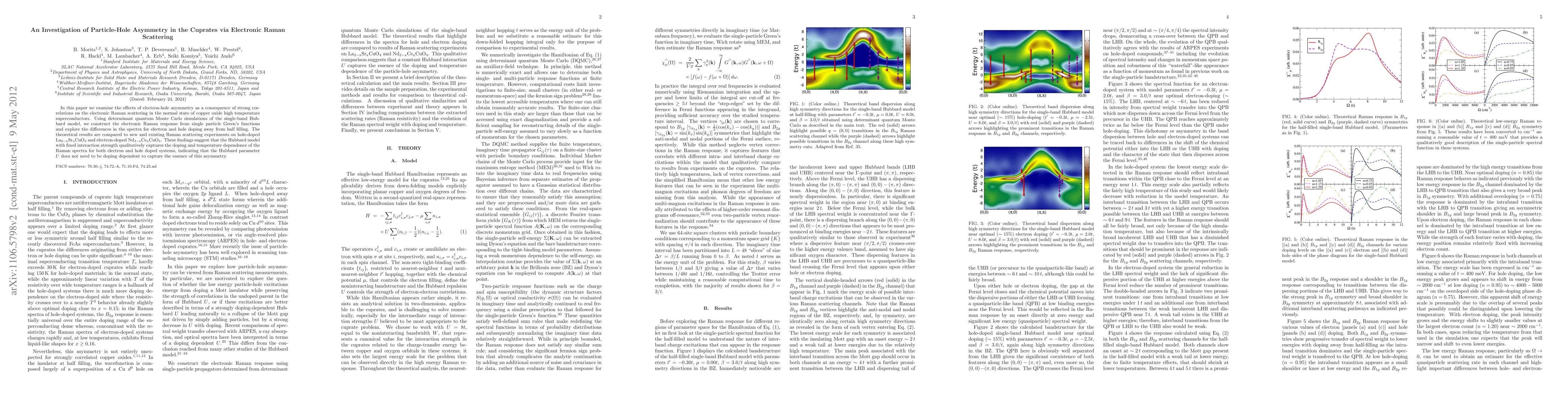 This paper investigates electron-hole asymmetry in cuprate superconductors using electronic Raman scattering and determinant quantum Monte Carlo simulations. The study finds that the Hubbard model can capture the Raman spectra's doping and temperature dependence, suggesting that the interaction strength does not need to vary with doping.
