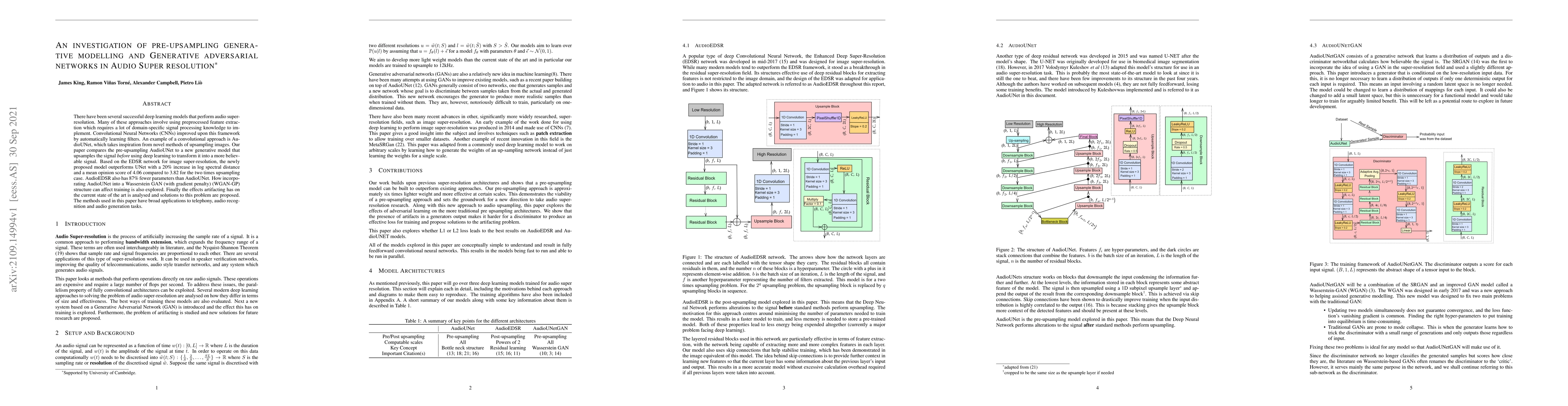 There have been several successful deep learning models that perform audio super-resolution. Many of these approaches involve using preprocessed feature extraction which requires a lot of domain-specific signal processing knowledge to implement. Convolutional Neural Networks (CNNs) improved upon this framework by automatically learning filters. An example of a convolutional approach is AudioUNet, which takes inspiration from novel methods of upsampling images. Our paper compares the pre-upsampling AudioUNet to a new generative model that upsamples the signal before using deep learning to transform it into a more believable signal. Based on the EDSR network for image super-resolution, the newly proposed model outperforms UNet with a 20% increase in log spectral distance and a mean opinion score of 4.06 compared to 3.82 for the two times upsampling case. AudioEDSR also has 87% fewer parameters than AudioUNet. How incorporating AudioUNet into a Wasserstein GAN (with gradient penalty) (WGAN-GP) structure can affect training is also explored. Finally the effects artifacting has on the current state of the art is analysed and solutions to this problem are proposed. The methods used in this paper have broad applications to telephony, audio recognition and audio generation tasks.