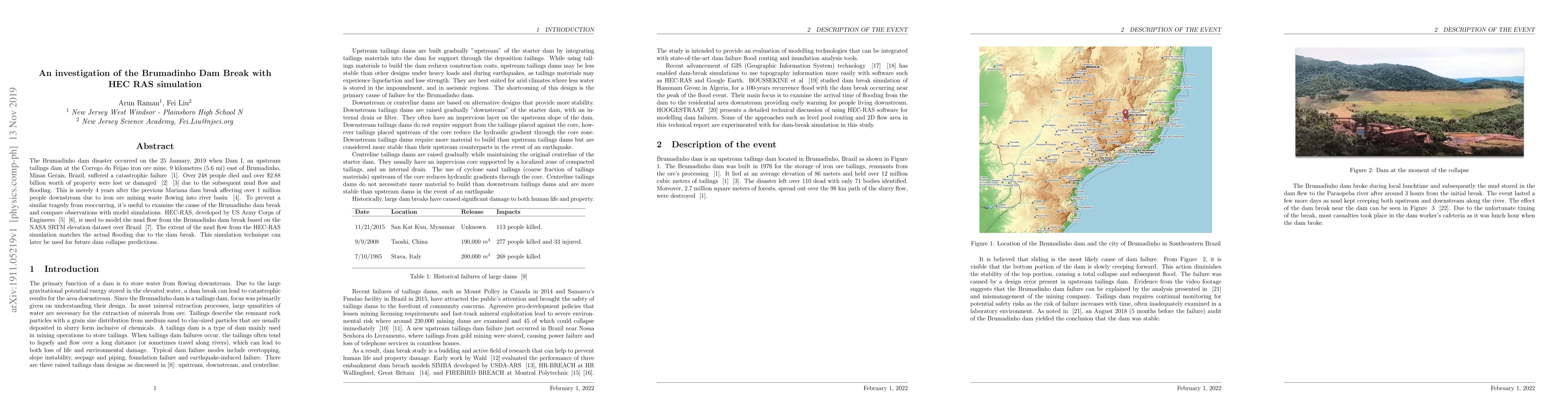 Researchers used HEC RAS simulation to model the Brumadinho dam break, matching the extent of mud flow and property damage. The study aims to prevent similar tragedies by examining the cause of the disaster and developing future dam collapse predictions.