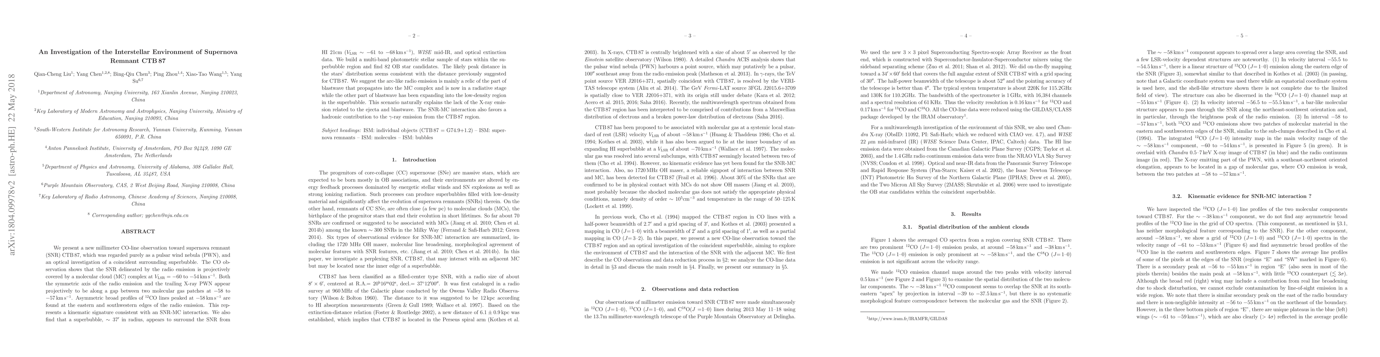 This paper investigates the interstellar environment of supernova remnant CTB 87, revealing a molecular cloud complex overlaying the SNR and a surrounding superbubble. The study suggests that the radio emission is from the part of the blastwave interacting with the molecular cloud, while the other part expands into the superbubble, explaining the lack of X-ray emission.