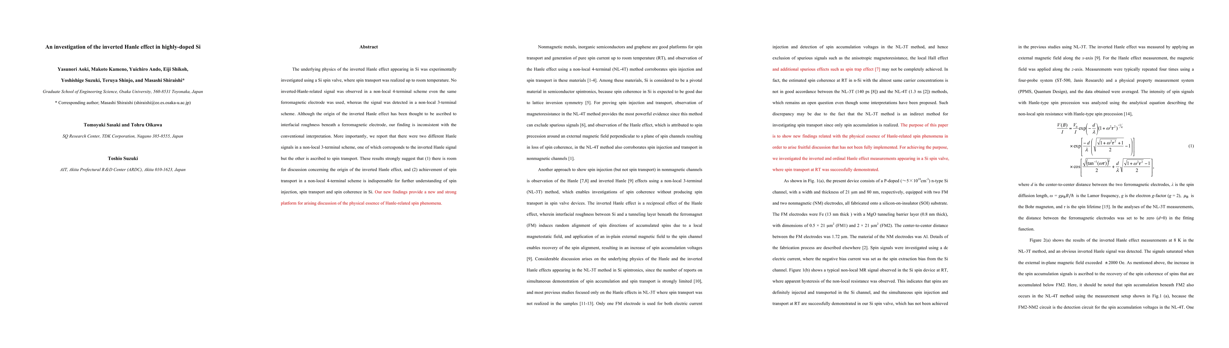 The underlying physics of the inverted Hanle effect appearing in Si was experimentally investigated using a Si spin valve, where spin transport was realized up to room temperature. No inverted-Hanle-related signal was observed in a non-local 4-terminal scheme even the same ferromagnetic electrode was used, whereas the signal was detected in a non-local 3-terminal scheme. Although the origin of the inverted Hanle effect has been thought to be ascribed to interfacial roughness beneath a ferromagnetic electrode, our finding is inconsistent with the conventional interpretation. More importantly, we report that there were two different Hanle signals in a non-local 3-terminal scheme, one of which corresponds to the inverted Hanle signal but the other is ascribed to spin transport. These results strongly suggest that (1) there is room for discussion concerning the origin of the inverted Hanle effect, and (2) achievement of spin transport in a non-local 4-terminal scheme is indispensable for further understanding of spin injection, spin transport and spin coherence in Si. Our new findings provide a new and strong platform for arising discussion of the physical essence of Hanle-related spin phenomena.