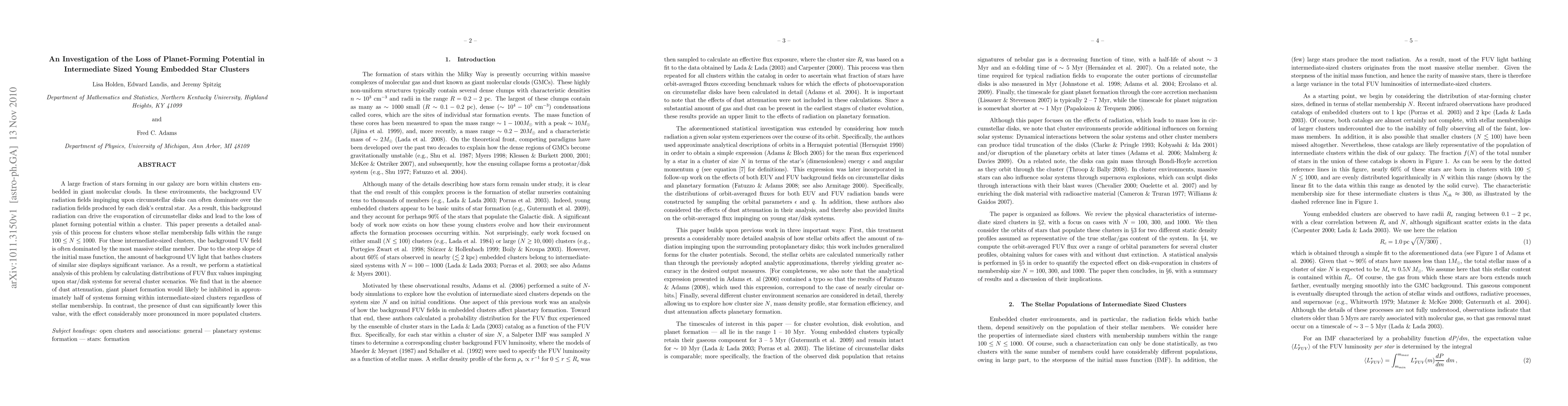 A large fraction of stars forming in our galaxy are born within clusters embedded in giant molecular clouds. In these environments, the background UV radiation fields impinging upon circumstellar disks can often dominate over the radiation fields produced by each disk's central star. As a result, this background radiation can drive the evaporation of circumstellar disks and lead to the loss of planet forming potential within a cluster. This paper presents a detailed analysis of this process for clusters whose stellar membership falls within the range $100 \le N \le 1000$. For these intermediate-sized clusters, the background UV field is often dominated by the most massive stellar member. Due to the steep slope of the initial mass function, the amount of background UV light that bathes clusters of similar size displays significant variance. As a result, we perform a statistical analysis of this problem by calculating distributions of FUV flux values impinging upon star/disk systems for several cluster scenarios. We find that in the absence of dust attenuation, giant planet formation would likely be inhibited in approximately half of systems forming within intermediate-sized clusters regardless of stellar membership. In contrast, the presence of dust can significantly lower this value, with the effect considerably more pronounced in more populated clusters.