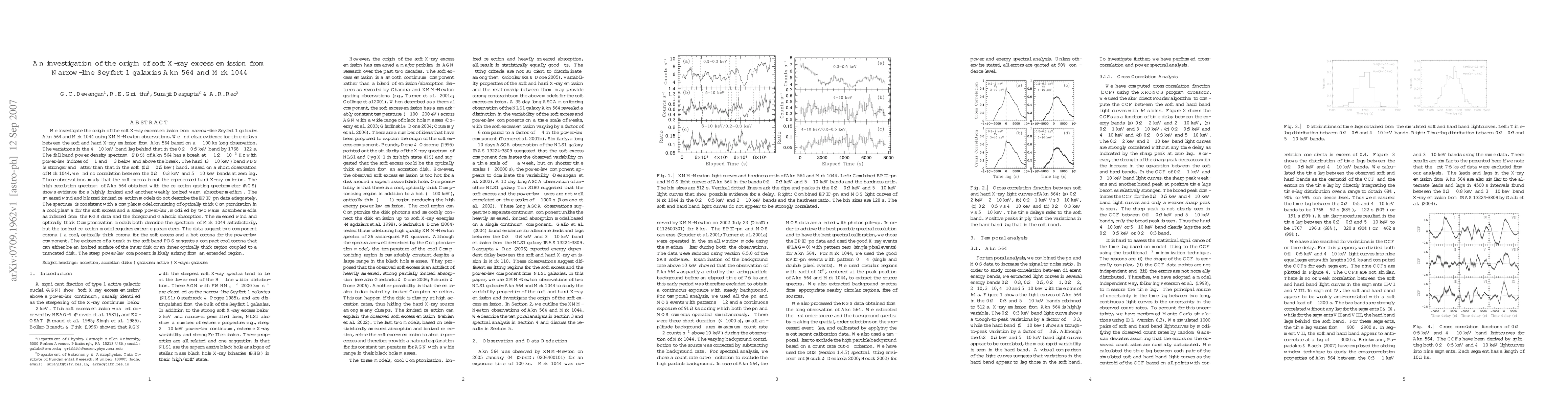 We investigate the origin of the soft X-ray excess emission from narrow-line Seyfert 1 galaxies Akn564 and Mrk1044 using XMM-Newton observations. We find clear evidence for time delays between the soft and hard X-ray emission from Akn564 based on a 100ks long observation. The variations in the 4-10keV band lag behind that in the 0.2-0.5keV band by 1768+/-122s. The full band power density spectrum (PDS) of Akn~564 has a break at ~1.2e-3Hz with power-law indices of ~1 and ~3 below and above the break. The hard (3-10keV) band PDS is stronger and flatter than that in the soft (0.2-0.5keV) band. Based on a short observation of Mrk1044, we find no correlation between the 0.2-0.3keV and 5-10keV bands at zero lag. These observations imply that the soft excess is not the reprocessed hard X-ray emission. The high resolution spectrum of Akn564 obtained with the RGS shows evidence for a highly ionized and another weakly ionized warm absorber medium. The smeared wind and blurred ionized reflection models do not describe the pn data adequately. The spectrum is consistent with a complex model consisting of optically thick Comptonization in a cool plasma for the soft excess and a steep power-law, modified by two warm absorber media as inferred from the RGS data and the foreground Galactic absorption. The smeared wind and optically thick Comptonization models both describe the spectrum of Mrk1044 satisfactorily, but the ionized reflection model requires extreme parameters. The data suggest two component corona -- a cool, optically thick corona for the soft excess and a hot corona for the power-law component. The existence of a break in the soft band PDS suggests a compact cool corona that can either be an ionized surface of the inner disk or an inner optically thick region coupled to a truncated disk.
