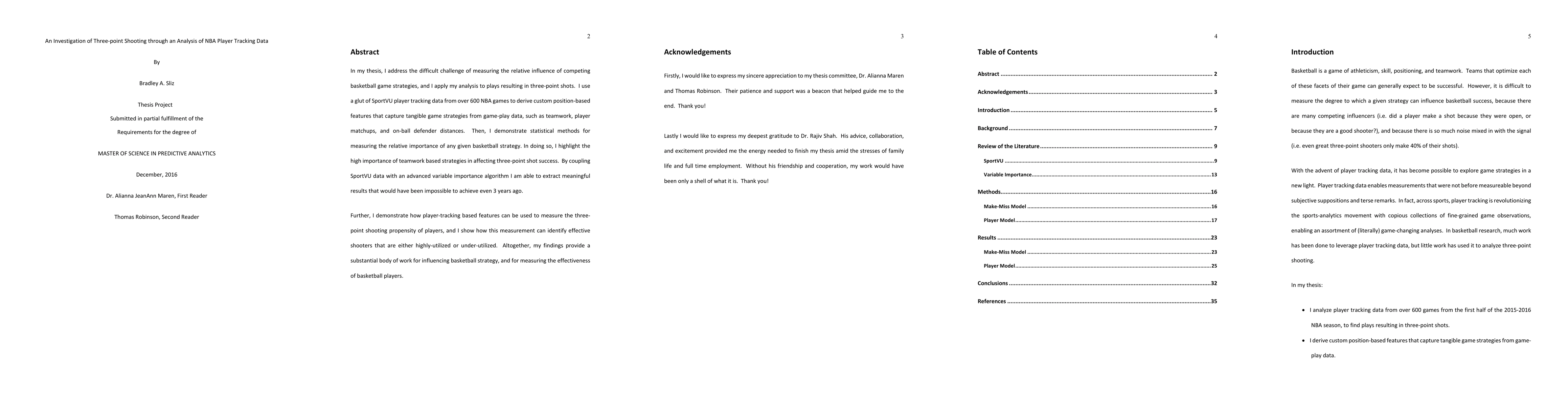 I address the difficult challenge of measuring the relative influence of competing basketball game strategies, and I apply my analysis to plays resulting in three-point shots. I use a glut of SportVU player tracking data from over 600 NBA games to derive custom position-based features that capture tangible game strategies from game-play data, such as teamwork, player matchups, and on-ball defender distances. Then, I demonstrate statistical methods for measuring the relative importance of any given basketball strategy. In doing so, I highlight the high importance of teamwork based strategies in affecting three-point shot success. By coupling SportVU data with an advanced variable importance algorithm I am able to extract meaningful results that would have been impossible to achieve even 3 years ago. Further, I demonstrate how player-tracking based features can be used to measure the three- point shooting propensity of players, and I show how this measurement can identify effective shooters that are either highly-utilized or under-utilized. Altogether, my findings provide a substantial body of work for influencing basketball strategy, and for measuring the effectiveness of basketball players.
