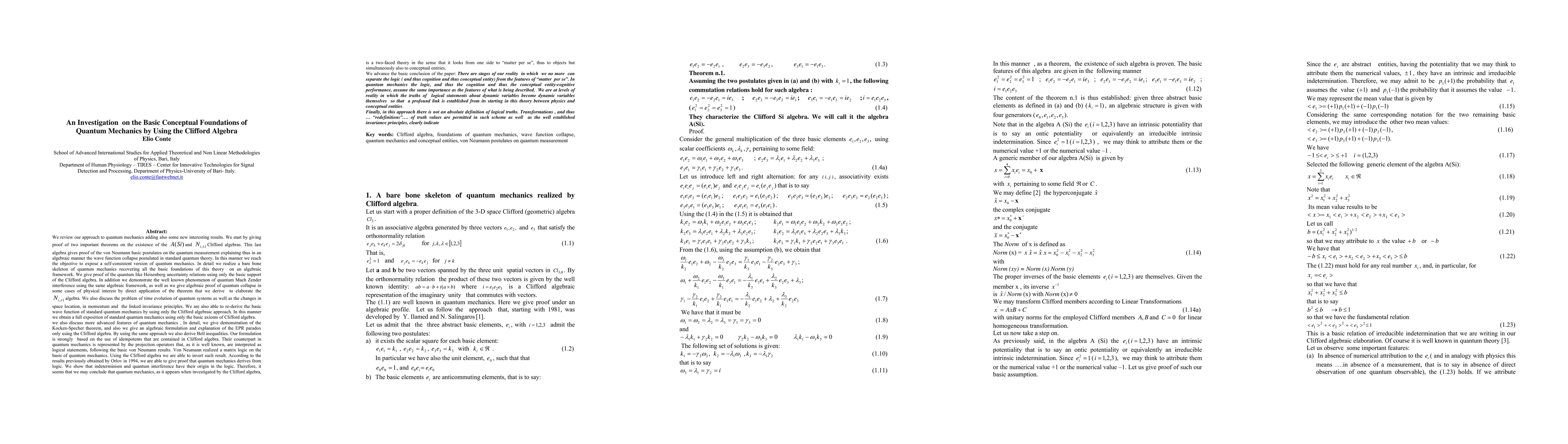 We review our approach to quantum mechanics adding also some new interesting results. We start by giving proof of two important theorems on the existence of the and Clifford algebras. This last algebra gives proof of the von Neumann basic postulates on the quantum measurement explaining thus in an algebraic manner the wave function collapse postulated in standard quantum theory. In this manner we reach the objective to expose a self-consistent version of quantum mechanics. We give proof of the quantum like Heisenberg uncertainty relations, the phenomenon of quantum Mach Zender interference as well as quantum collapse in some cases of physical interest We also discuss the problem of time evolution of quantum systems as well as the changes in space location. We also give demonstration of the Kocken-Specher theorem, and also we give an algebraic formulation and explanation of the EPR . By using the same approach we also derive Bell inequalities. Our formulation is strongly based on the use of idempotents that are contained in Clifford algebra. Their counterpart in quantum mechanics is represented by the projection operators that are interpreted as logical statements, following the basic von Neumann results. Using the Clifford algebra we are able to invert such result. According to the results previously obtained by Orlov in 1994, we are able to give proof that quantum mechanics derives from logic. We show that indeterminism and quantum interference have their origin in the logic.