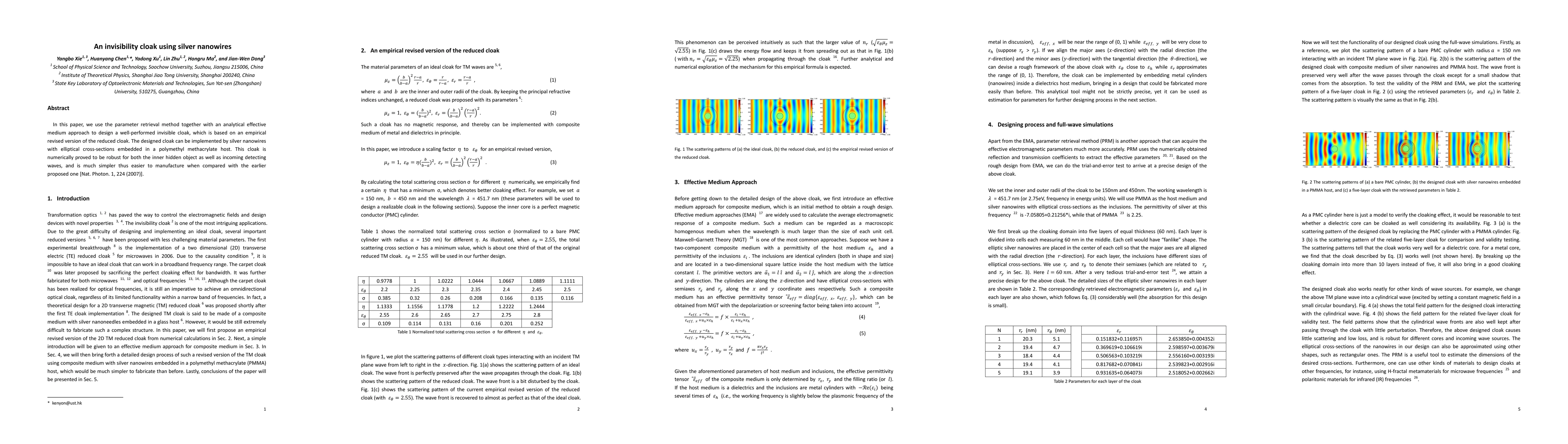 In this paper, we use the parameter retrieval method together with an analytical effective medium approach to design a well-performed invisible cloak, which is based on an empirical revised version of the reduced cloak. The designed cloak can be implemented by silver nanowires with elliptical cross-sections embedded in a polymethyl methacrylate host. This cloak is numerically proved to be robust for both the inner hidden object as well as incoming detecting waves, and is much simpler thus easier to manufacture when compared with the earlier proposed one [Nat. Photon. 1, 224 (2007)].