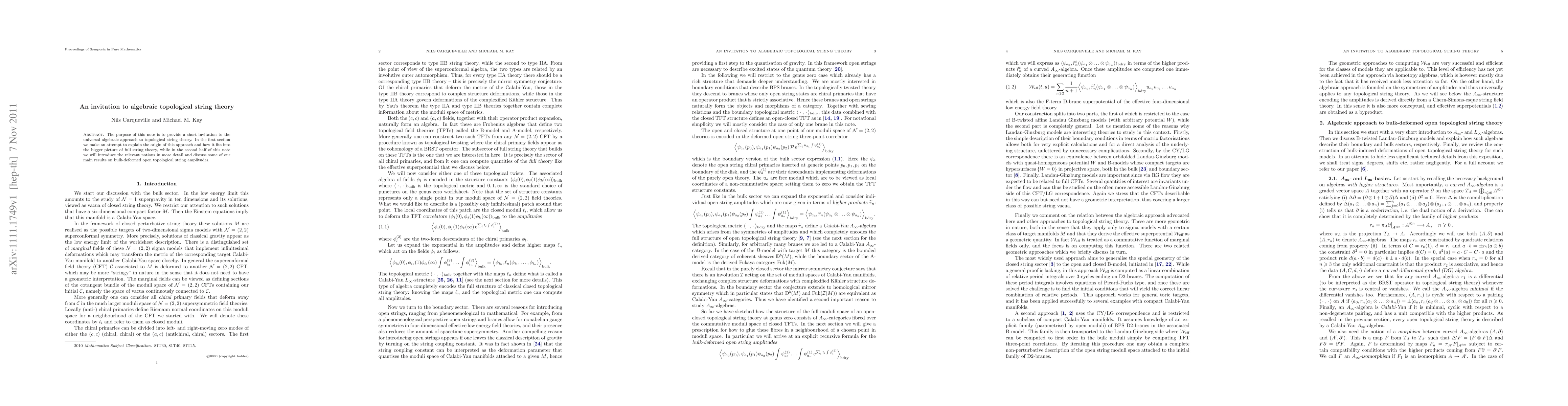 The purpose of this note is to provide a short invitation to the universal algebraic approach to topological string theory. In the first section we make an attempt to explain the origin of this approach and how it fits into the bigger picture of full string theory, while in the second half of this note we will introduce the relevant notions in more detail and discuss some of our main results on bulk-deformed open topological string amplitudes.