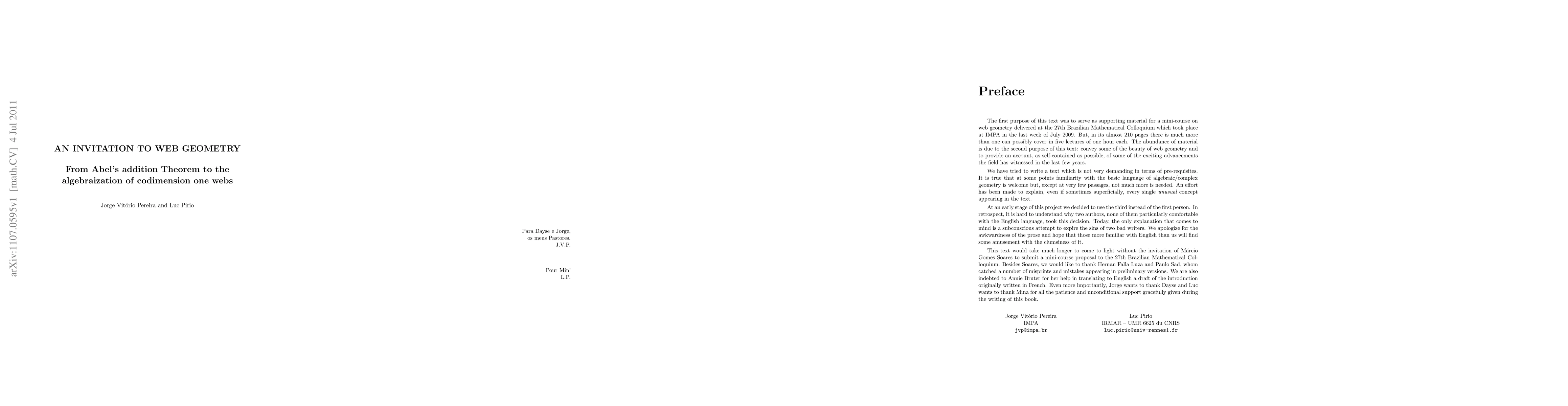 This book was intended to serve as supporting material for a mini-course on web geometry delivered at the 27th Brazilian Mathematical Colloquium which took place at IMPA in the last week of July 2009.