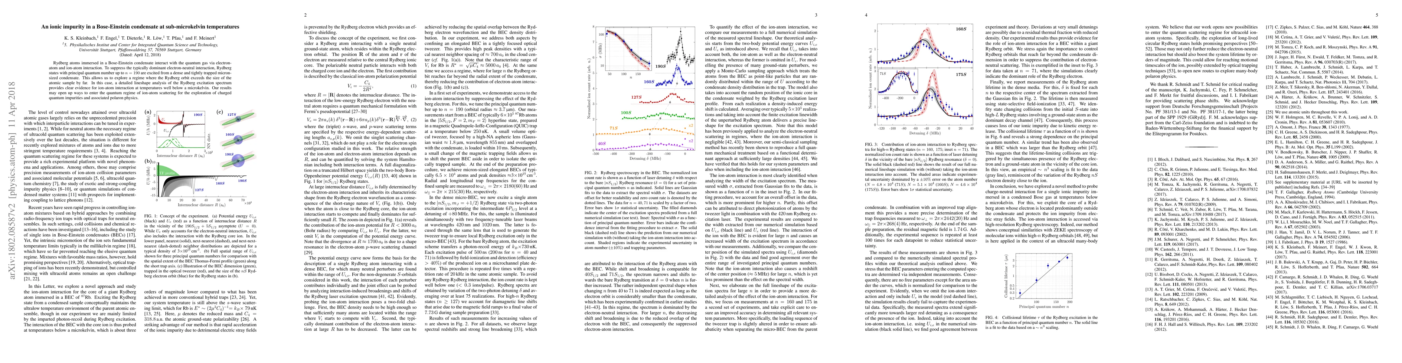 This research investigates Rydberg atoms in a Bose-Einstein condensate to suppress electron-neutral interactions, revealing ion-atom interactions via Rydberg excitation spectrum analysis at sub-microkelvin temperatures. The findings suggest potential pathways to explore charged quantum impurities and polaron physics.