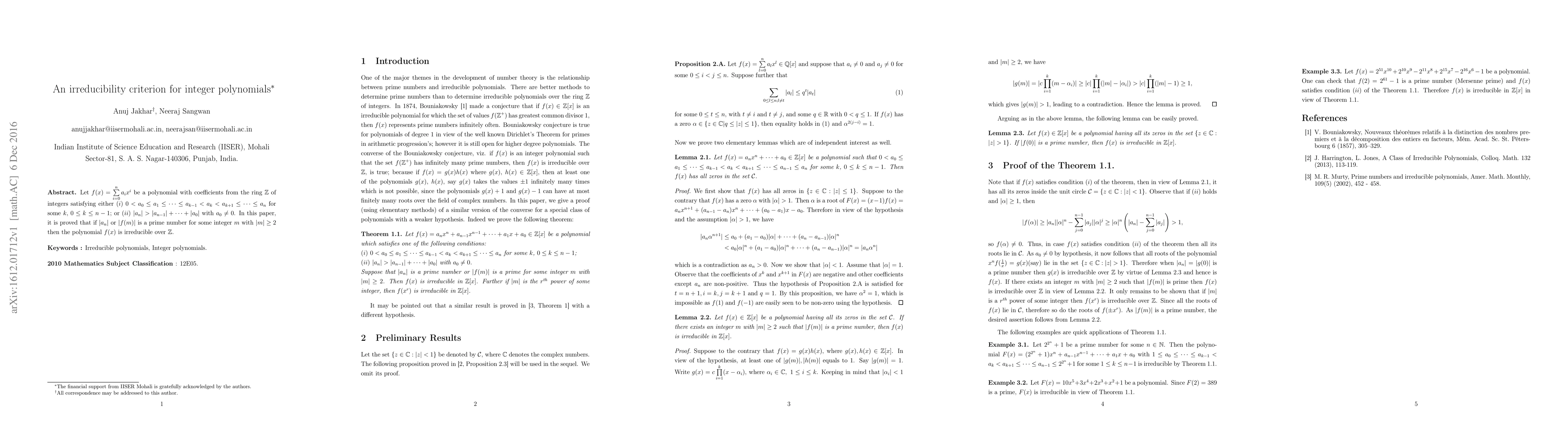 The criterion applies to polynomials with specific coefficient constraints and has implications for the classification of polynomials in number theory.