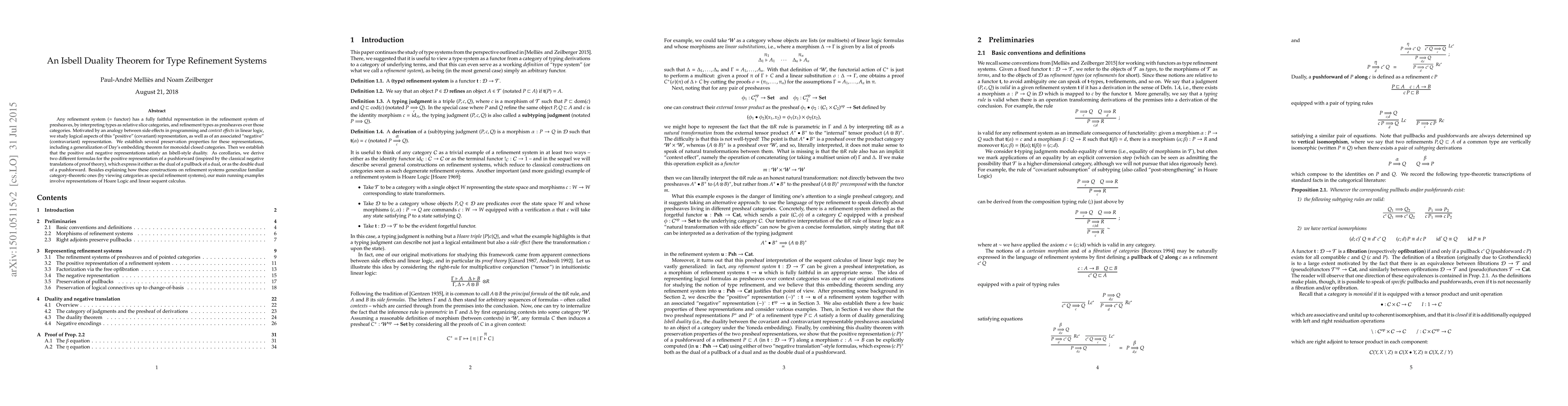 Any refinement system (= functor) has a fully faithful representation in the refinement system of presheaves, by interpreting types as relative slice categories, and refinement types as presheaves over those categories. Motivated by an analogy between side effects in programming and *context effects* in linear logic, we study logical aspects of this "positive" (covariant) representation, as well as of an associated "negative" (contravariant) representation. We establish several preservation properties for these representations, including a generalization of Day's embedding theorem for monoidal closed categories. Then we establish that the positive and negative representations satisfy an Isbell-style duality. As corollaries, we derive two different formulas for the positive representation of a pushforward (inspired by the classical negative translations of proof theory), which express it either as the dual of a pullback of a dual, or as the double dual of a pushforward. Besides explaining how these constructions on refinement systems generalize familiar category-theoretic ones (by viewing categories as special refinement systems), our main running examples involve representations of Hoare Logic and linear sequent calculus.