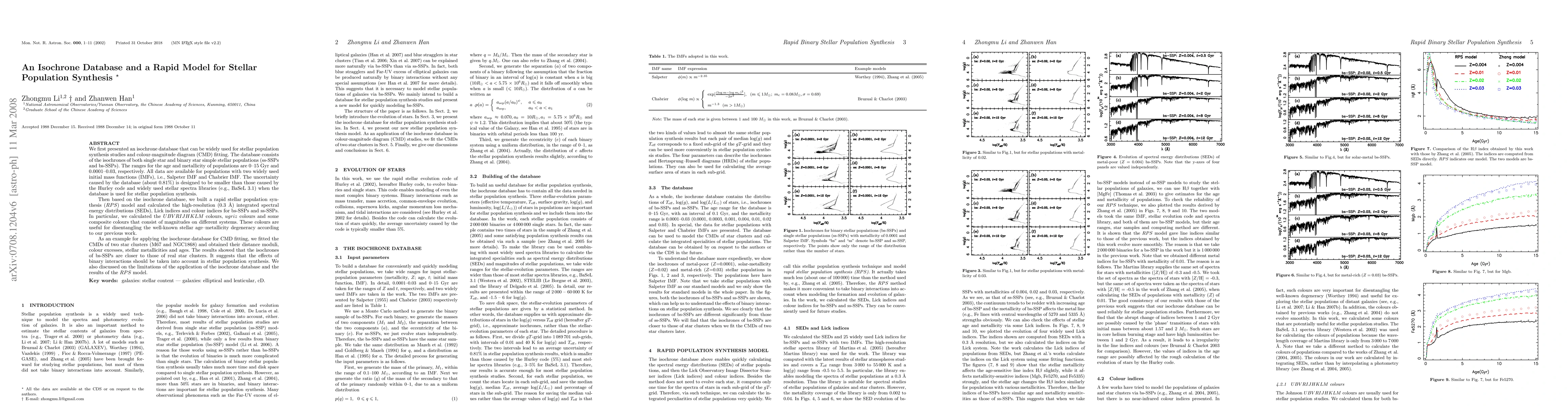 This paper presents an extensive isochrone database for stellar population synthesis, covering single and binary star populations with ages ranging from 0-15 Gyr and metallicities from 0.0001-0.03. It also introduces a rapid model for stellar population synthesis that calculates integrated spectral energy distributions and various colour indices, and demonstrates its use in fitting the colour-magnitude diagrams of star clusters M67 and NGC1868.