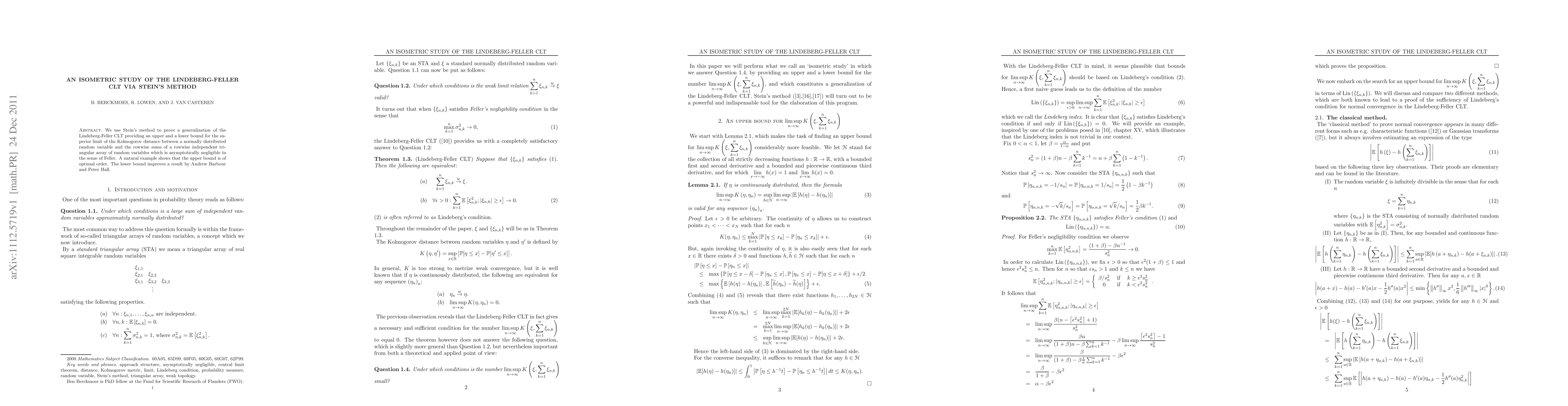 This paper employs Stein's method to generalize the Lindeberg-Feller Central Limit Theorem, establishing optimal upper and improved lower bounds for the Kolmogorov distance between normal distributions and rowwise sums of independent random variables in a triangular array.