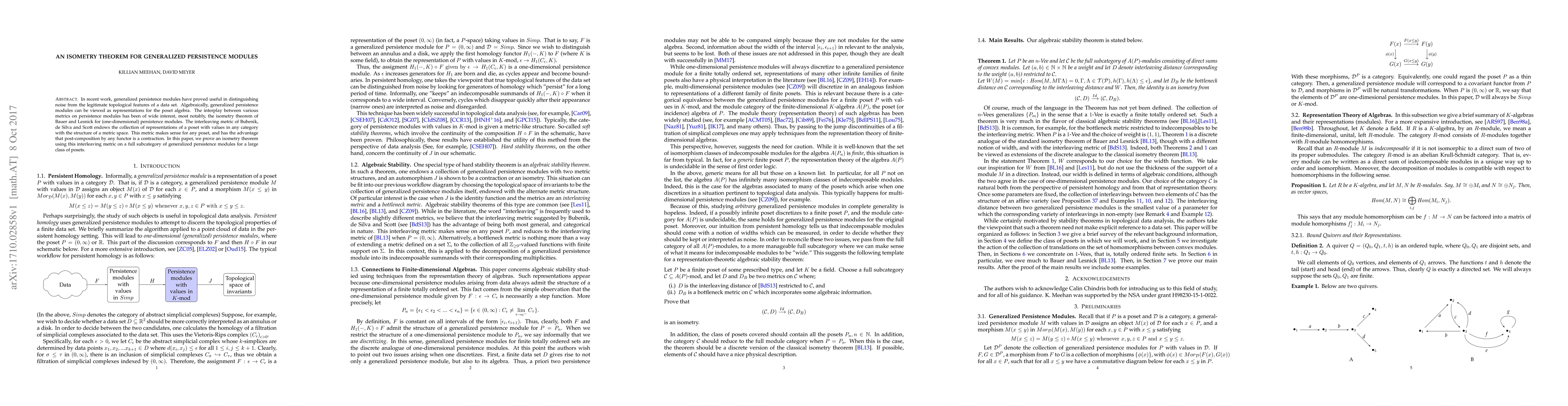 This paper proves an isometry theorem for generalized persistence modules using the interleaving metric, extending the results of Bauer and Lesnick to a broader class of posets and demonstrating that post-composition by any functor remains a contraction.