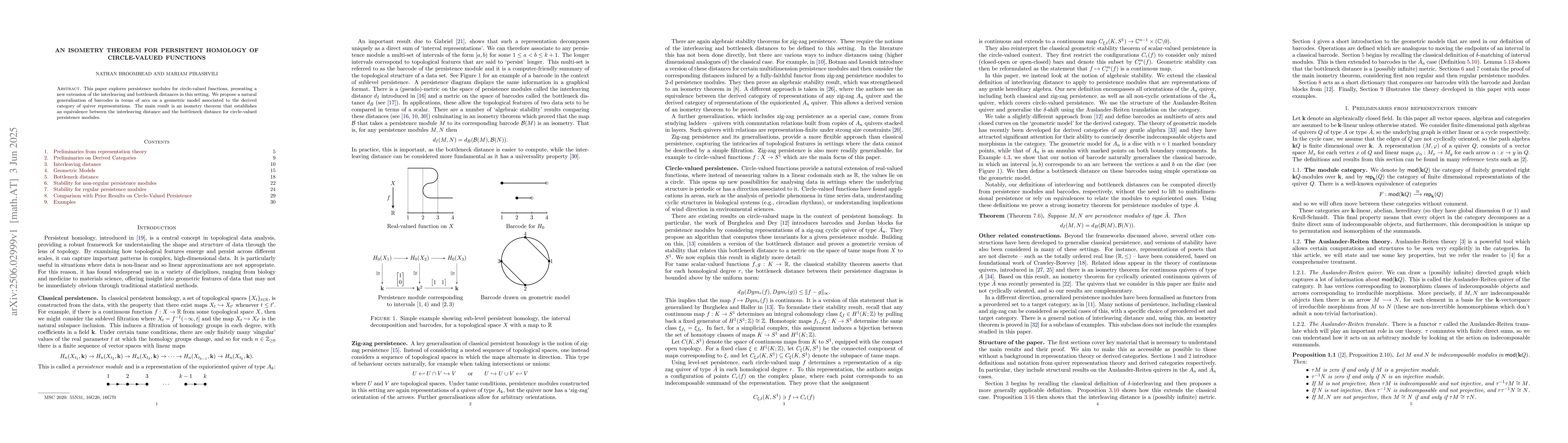 The isometry theorem linking interleaving and bottleneck distances for circle-valued persistence modules.