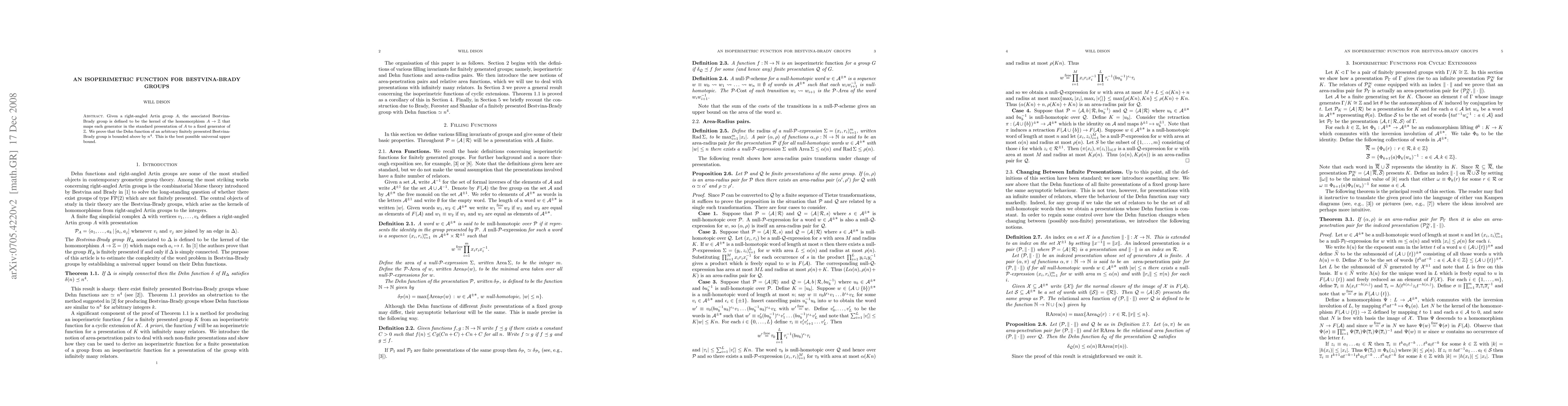 This paper establishes that the Dehn function for any finitely presented Bestvina-Brady group associated with a right-angled Artin group is bounded above by n^4, representing the optimal universal upper bound.