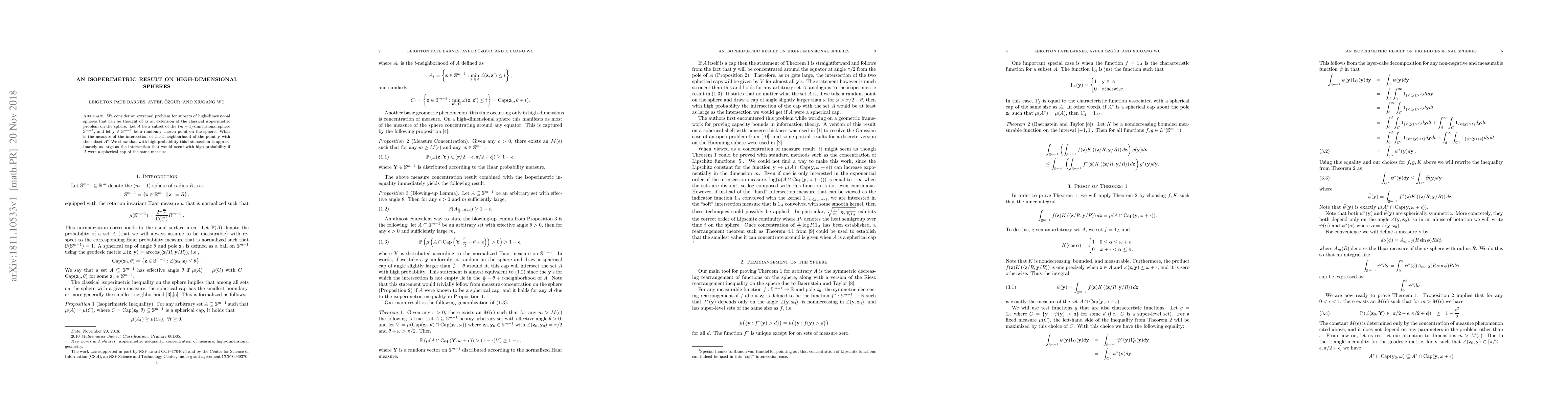 We consider an extremal problem for subsets of high-dimensional spheres that can be thought of as an extension of the classical isoperimetric problem on the sphere. Let $A$ be a subset of the $(m-1)$-dimensional sphere $\mathbb{S}^{m-1}$, and let $\mathbf{y}\in \mathbb{S}^{m-1}$ be a randomly chosen point on the sphere. What is the measure of the intersection of the $t$-neighborhood of the point $\mathbf{y}$ with the subset $A$? We show that with high probability this intersection is approximately as large as the intersection that would occur with high probability if $A$ were a spherical cap of the same measure.