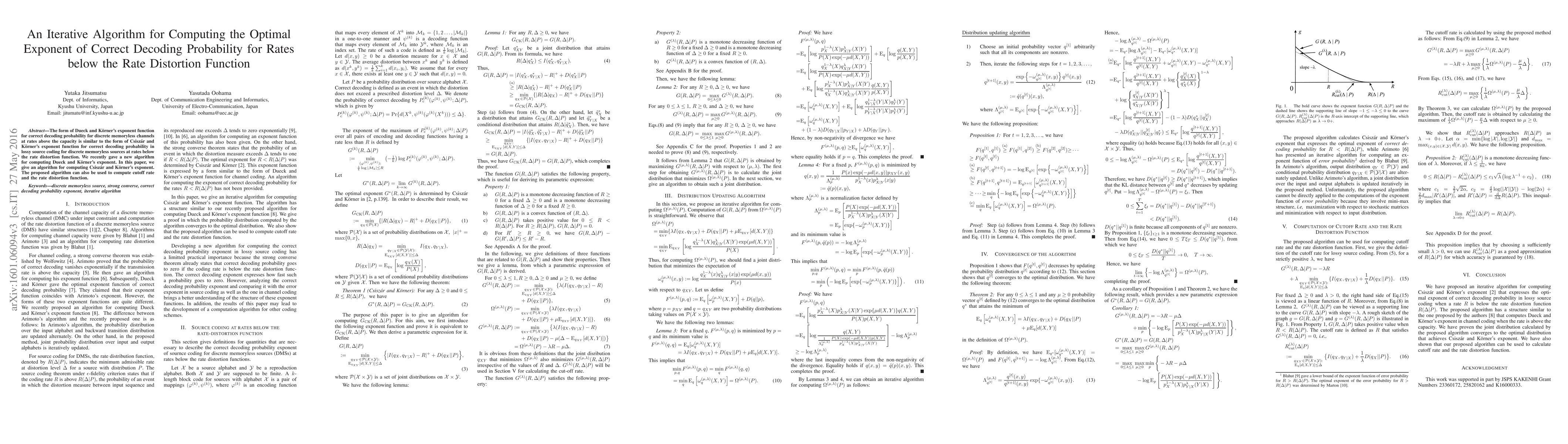 The form of Dueck and K\"orner's exponent function for correct decoding probability for discrete memoryless channels at rates above the capacity is similar to the form of Csisz\'ar and K\"orner's exponent function for correct decoding probability in lossy source coding for discrete memoryless sources at rates below the rate distortion function. We recently gave a new algorithm for computing Dueck and K\"orner's exponent. In this paper, we give an algorithm for computing Csisz\'ar and K\"orner's exponent. The proposed algorithm can be also used to compute cutoff rate and the rate distortion function.