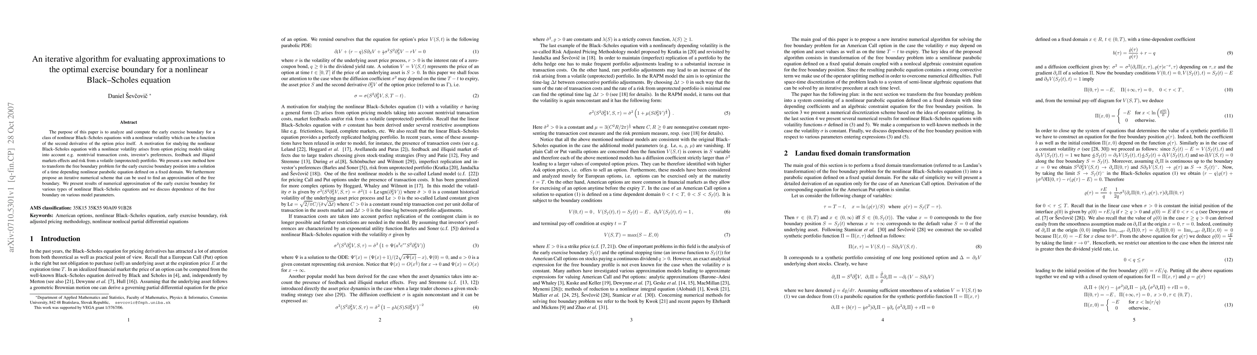 This paper introduces an iterative algorithm to evaluate the optimal early exercise boundary for nonlinear Black-Scholes equations with nonlinear volatility. It proposes a method to transform the free boundary problem into a time-dependent nonlinear parabolic equation and presents numerical results for various model parameters.