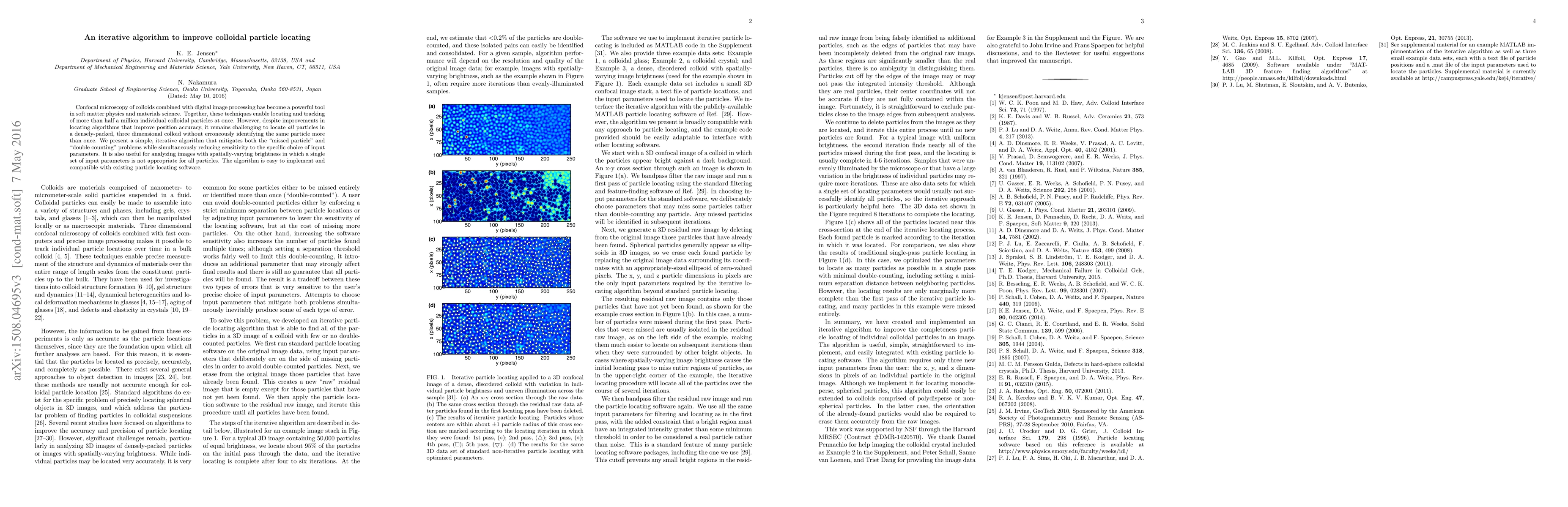 This paper introduces an iterative algorithm to enhance the accuracy of locating colloidal particles in confocal microscopy images, addressing issues of "missed particles" and "double counting" while maintaining robustness to varying input parameters. The algorithm is simple, effective, and compatible with existing particle tracking software.