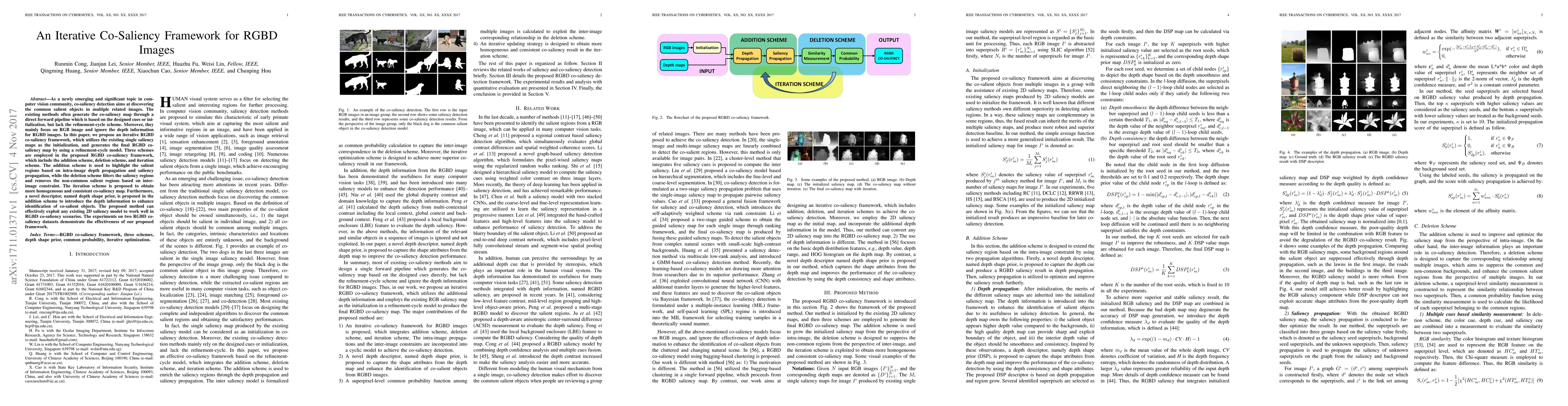 This paper proposes an iterative framework for RGBD co-saliency detection that refines the co-saliency map through a cycle of addition, deletion, and iteration schemes, leveraging depth information and enhancing the identification of common salient objects across multiple images. Experiments show the effectiveness of the proposed method on RGBD datasets.