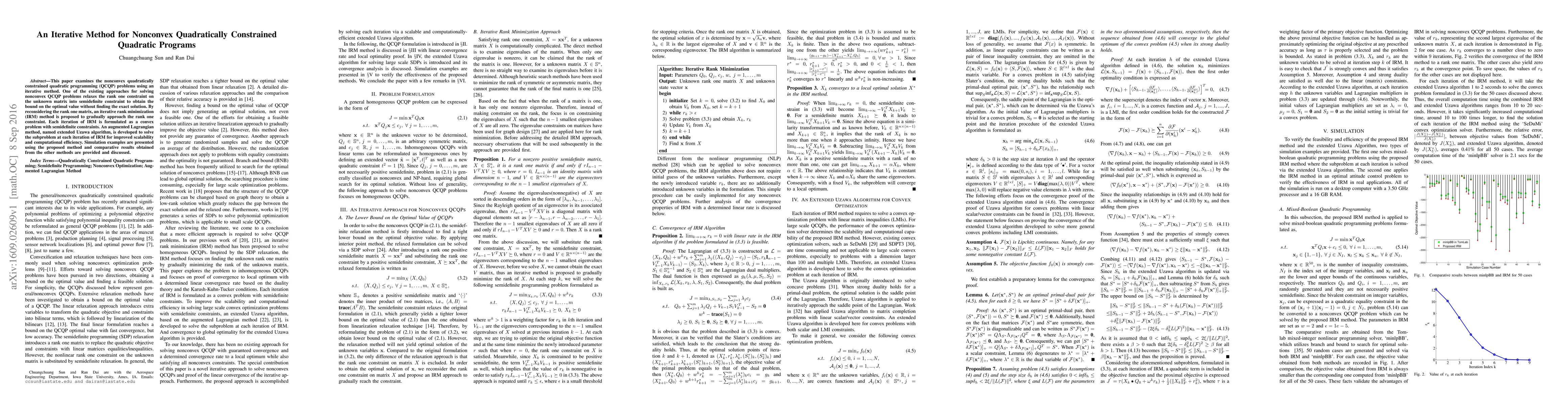 This paper proposes an iterative rank minimization (IRM) method for solving nonconvex quadratically constrained quadratic programs (QCQP). The extended Uzawa algorithm is used to efficiently solve each convex subproblem in the iterative process, demonstrating improved scalability and computational efficiency through simulation.