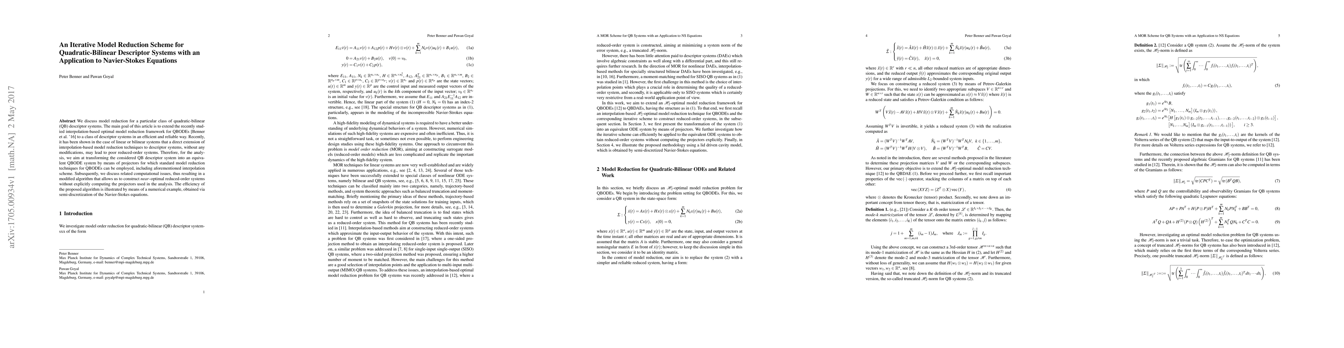 Researchers developed an efficient algorithm for reducing the complexity of quadratic-bilinear descriptor systems, with applications to solving Navier-Stokes equations.