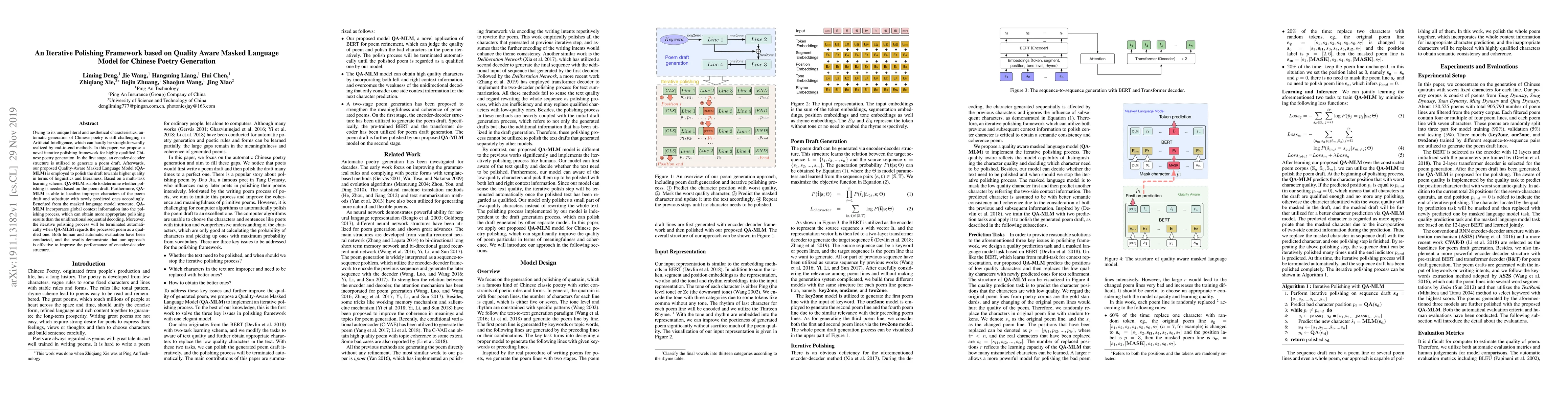 A novel iterative polishing framework uses a Quality-Aware Masked Language Model to improve the quality of Chinese poetry generated by an encoder-decoder structure.
