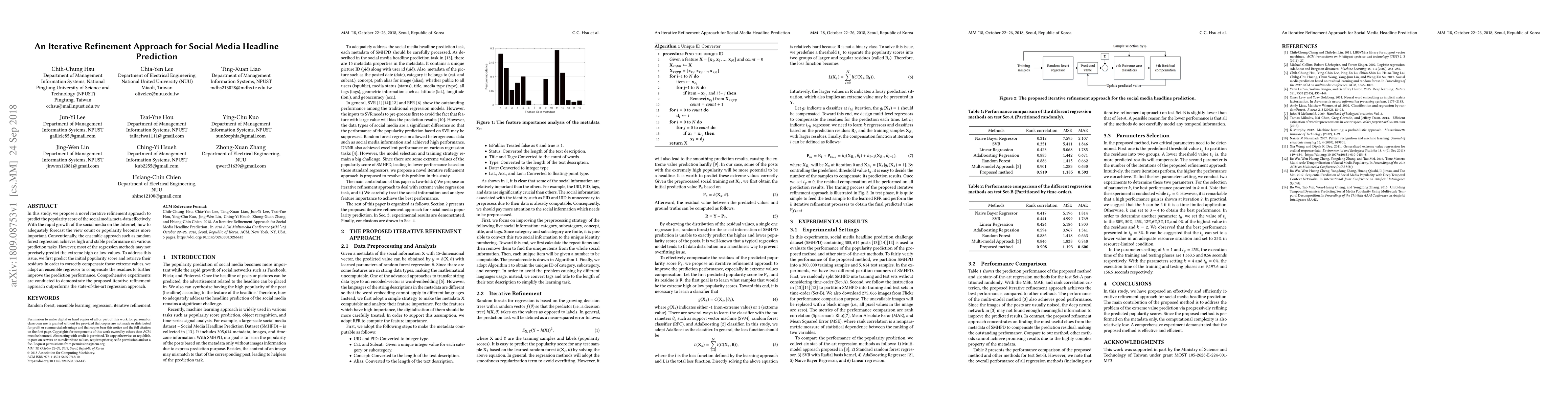 This study introduces an iterative refinement method to enhance the prediction of social media headline popularity, addressing the limitations of conventional ensemble regression methods. The approach first predicts initial scores and refines them using an ensemble regressor to better handle extreme values, outperforming existing methods in comprehensive experiments.