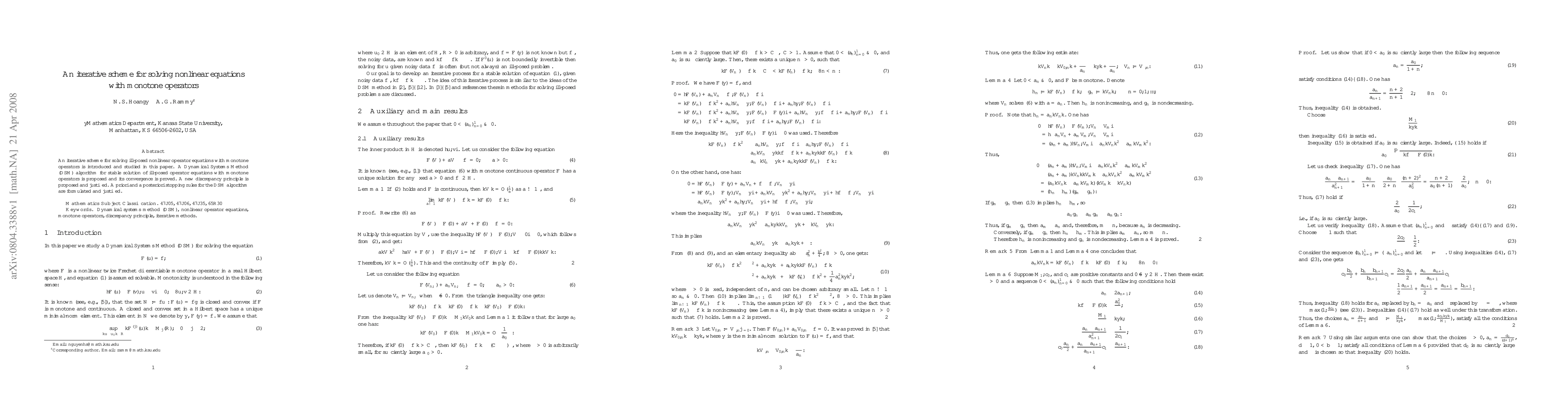 This paper introduces an iterative scheme using the Dynamical Systems Method (DSM) to solve ill-posed nonlinear operator equations with monotone operators, proving its convergence and proposing a new discrepancy principle, along with a priori and a posteriori stopping rules.