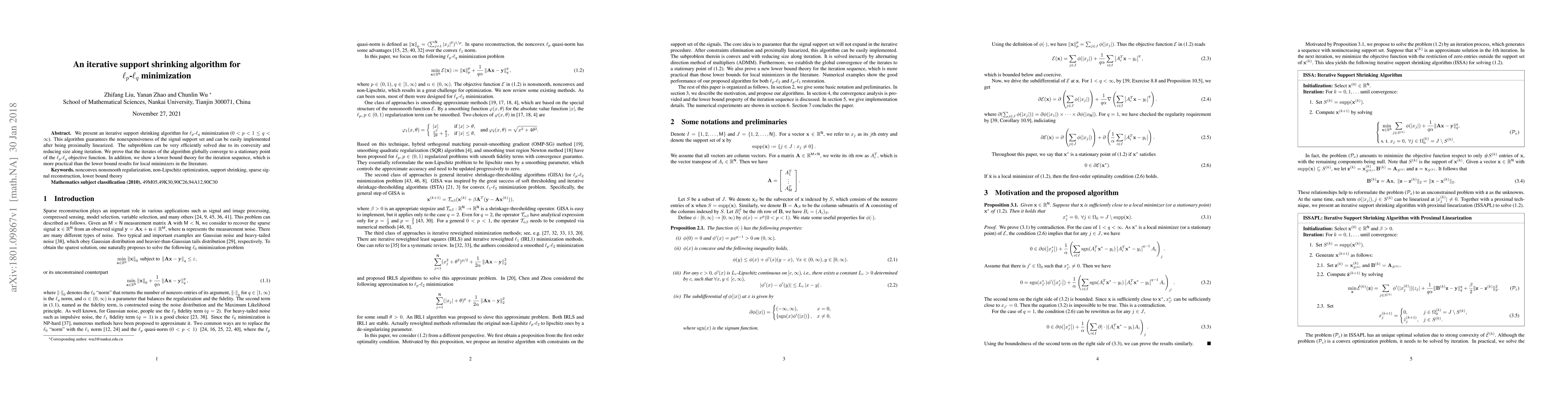 We present an iterative support shrinking algorithm for $\ell_{p}$-$\ell_{q}$ minimization~($0