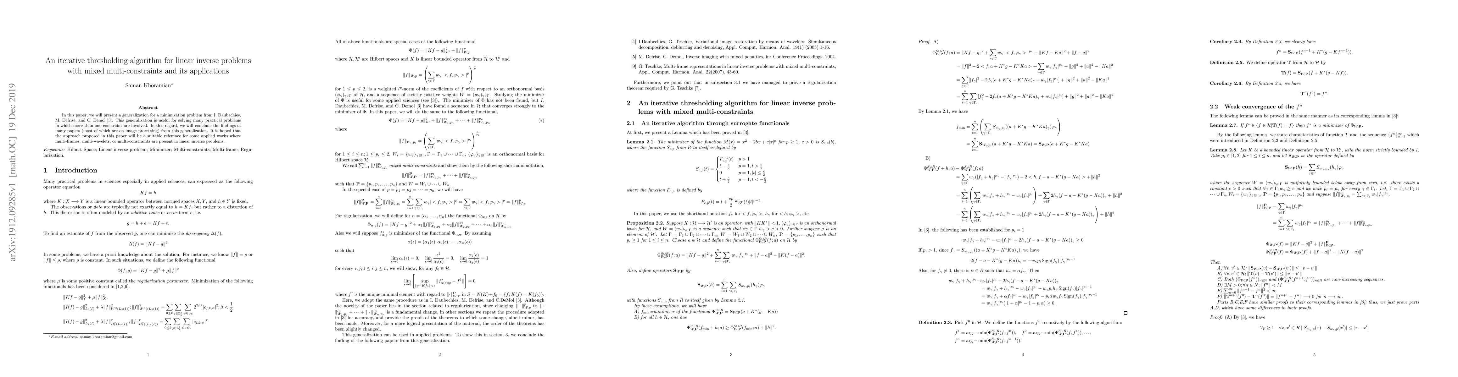 This paper proposes an iterative thresholding algorithm for solving linear inverse problems with multiple constraints, offering a generalization of existing methods for applications involving multi-frames, wavelets, or multiple constraints.
