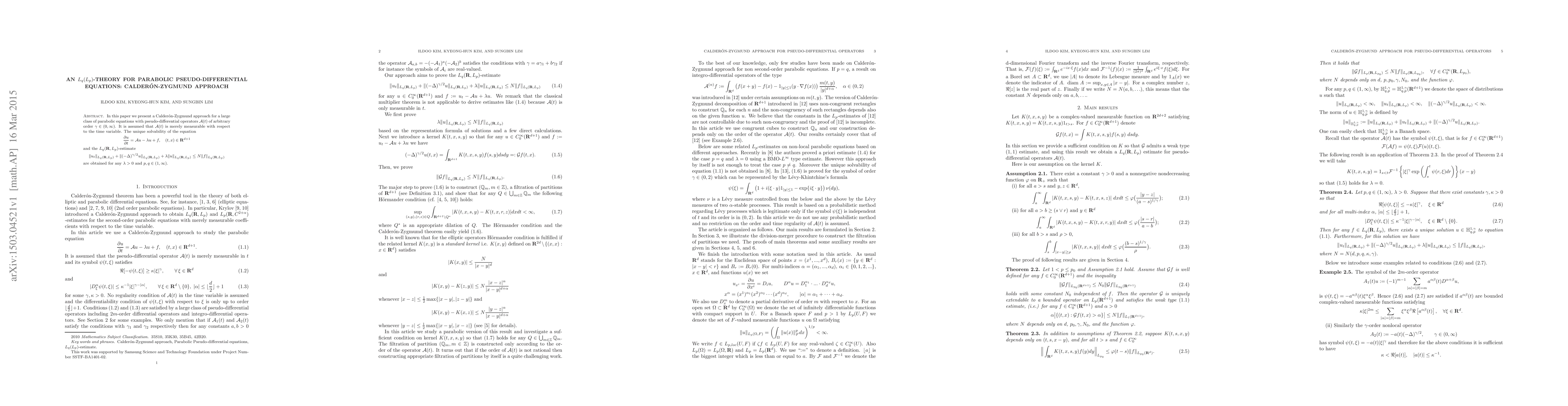 This paper develops a Calderón-Zygmund approach for solving parabolic pseudo-differential equations with arbitrary order operators, proving unique solvability and establishing $L_{q}(\mathbb{R},L_{p})$-norm estimates for solutions. The operators are assumed measurable with respect to time.