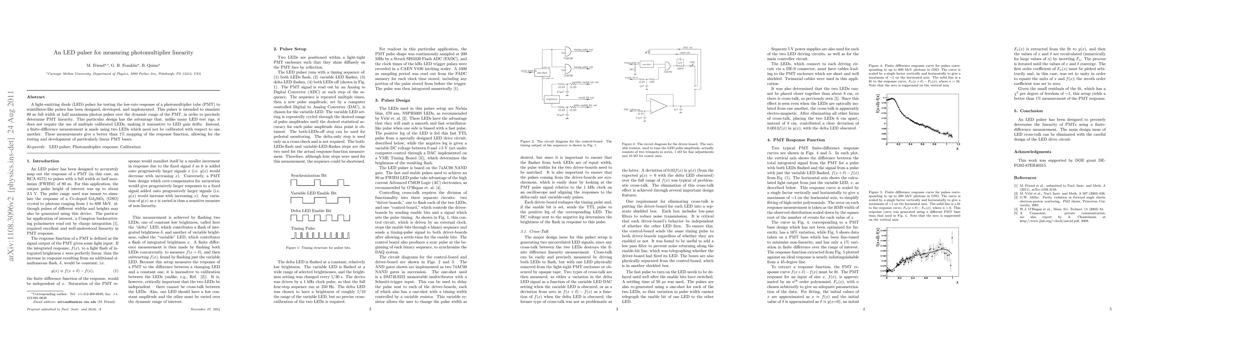Researchers designed an LED pulser to test photomultiplier tube linearity by simulating short pulses, allowing for precise measurement with minimal calibration requirements.