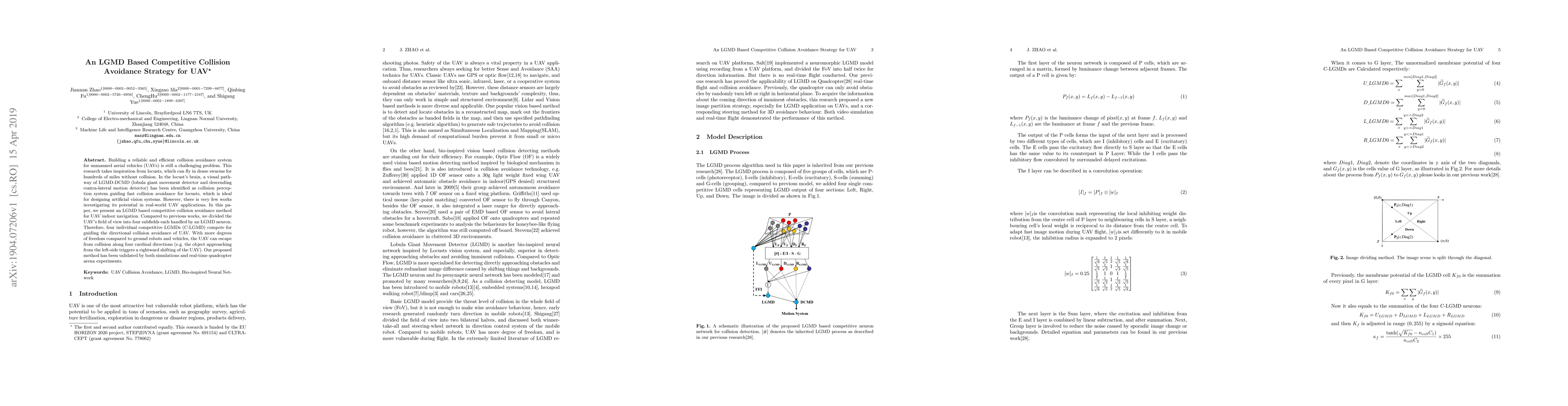 This paper proposes an LGMD-based competitive collision avoidance strategy for UAVs inspired by locusts' visual pathway, dividing the UAV's field of view into four subfields each managed by an LGMD. The method allows the UAV to navigate and avoid collisions by shifting in four cardinal directions, validated through simulations and real-world experiments.