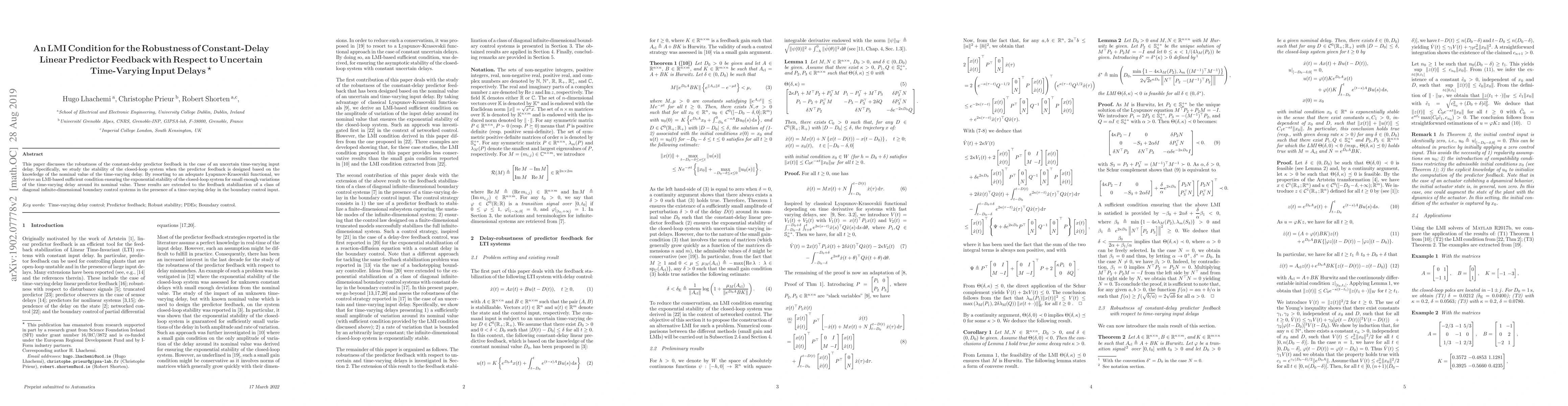 This paper presents an LMI condition to ensure the robustness and exponential stability of constant-delay predictor feedback systems under uncertain time-varying input delays. The study extends these results to infinite-dimensional boundary control systems with time-varying delays in the boundary control input.
