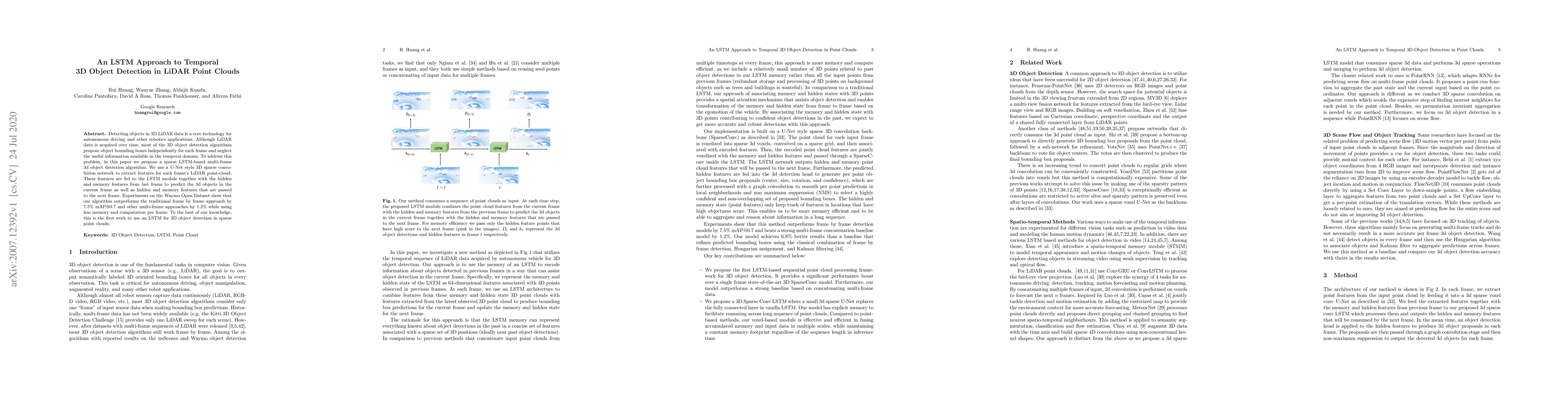 This paper proposes a sparse LSTM-based algorithm for temporal 3D object detection in LiDAR point clouds, utilizing a U-Net style network for feature extraction and LSTM for temporal information integration. The method outperforms traditional frame-by-frame and other multi-frame approaches, achieving better accuracy and efficiency.