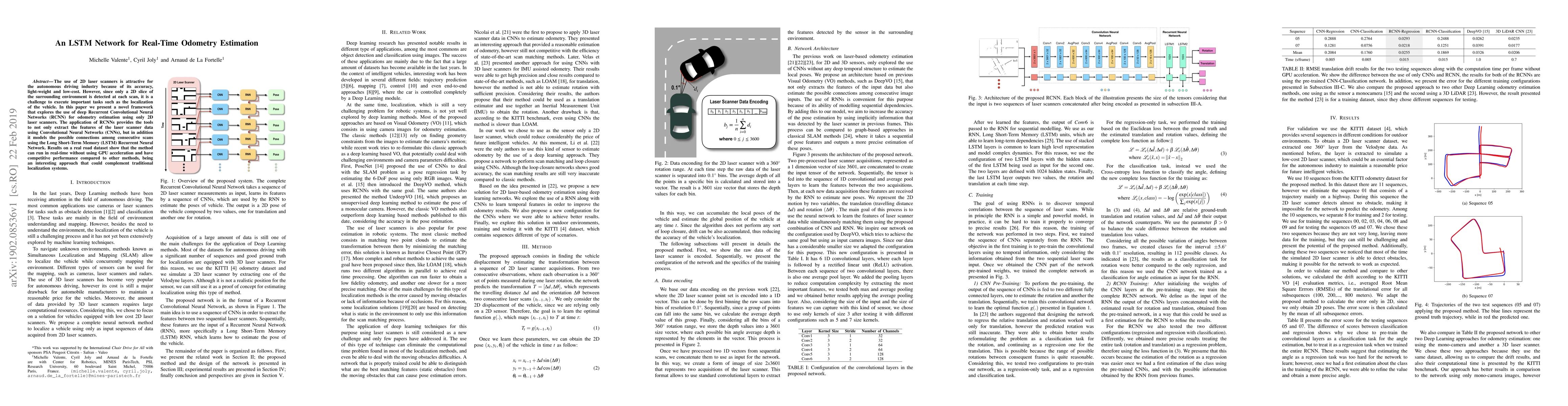 The use of 2D laser scanners is attractive for the autonomous driving industry because of its accuracy, light-weight and low-cost. However, since only a 2D slice of the surrounding environment is detected at each scan, it is a challenge to execute important tasks such as the localization of the vehicle. In this paper we present a novel framework that explores the use of deep Recurrent Convolutional Neural Networks (RCNN) for odometry estimation using only 2D laser scanners. The application of RCNNs provides the tools to not only extract the features of the laser scanner data using Convolutional Neural Networks (CNNs), but in addition it models the possible connections among consecutive scans using the Long Short-Term Memory (LSTM) Recurrent Neural Network. Results on a real road dataset show that the method can run in real-time without using GPU acceleration and have competitive performance compared to other methods, being an interesting approach that could complement traditional localization systems.