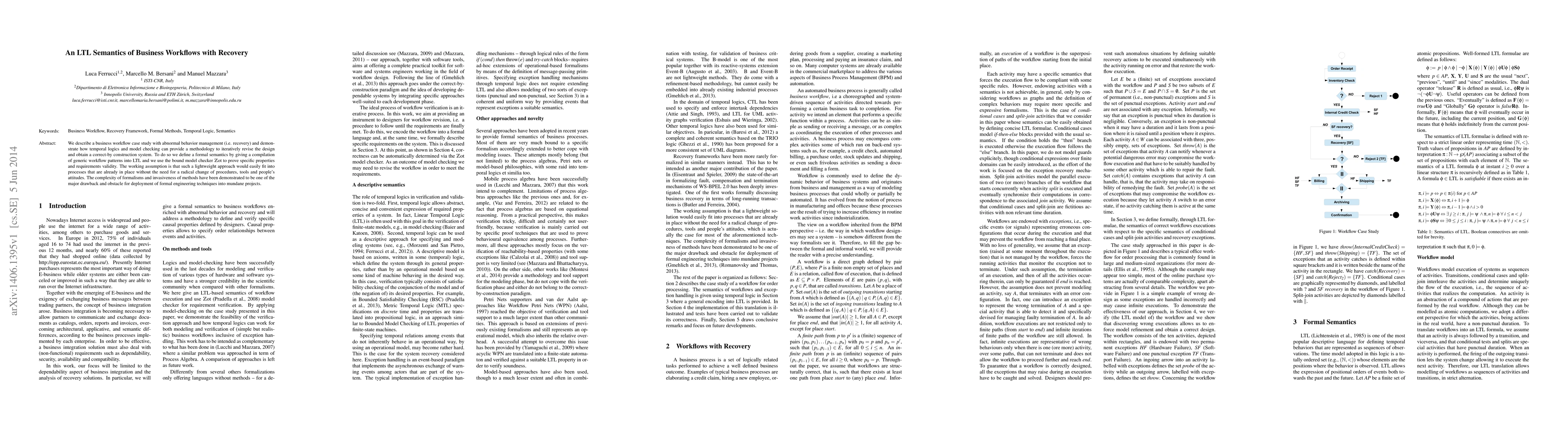 We describe a business workflow case study with abnormal behavior management (i.e. recovery) and demonstrate how temporal logics and model checking can provide a methodology to iteratively revise the design and obtain a correct-by construction system. To do so we define a formal semantics by giving a compilation of generic workflow patterns into LTL and we use the bound model checker Zot to prove specific properties and requirements validity. The working assumption is that such a lightweight approach would easily fit into processes that are already in place without the need for a radical change of procedures, tools and people's attitudes. The complexity of formalisms and invasiveness of methods have been demonstrated to be one of the major drawback and obstacle for deployment of formal engineering techniques into mundane projects.