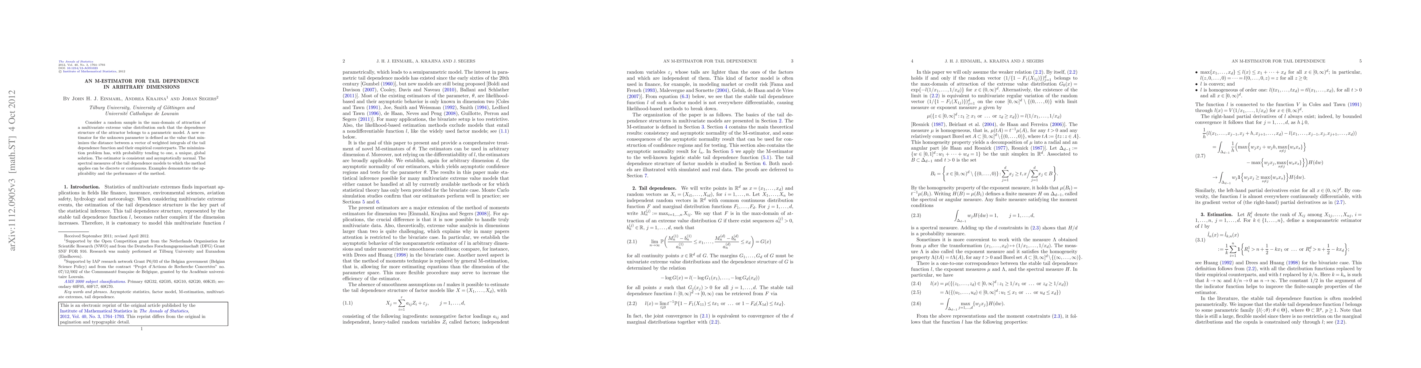 This paper introduces a new M-estimator for tail dependence in multivariate extreme value distributions, which minimizes the distance between theoretical and empirical tail dependence functions. The estimator is shown to be consistent and asymptotically normal, applicable to both discrete and continuous spectral measures.
