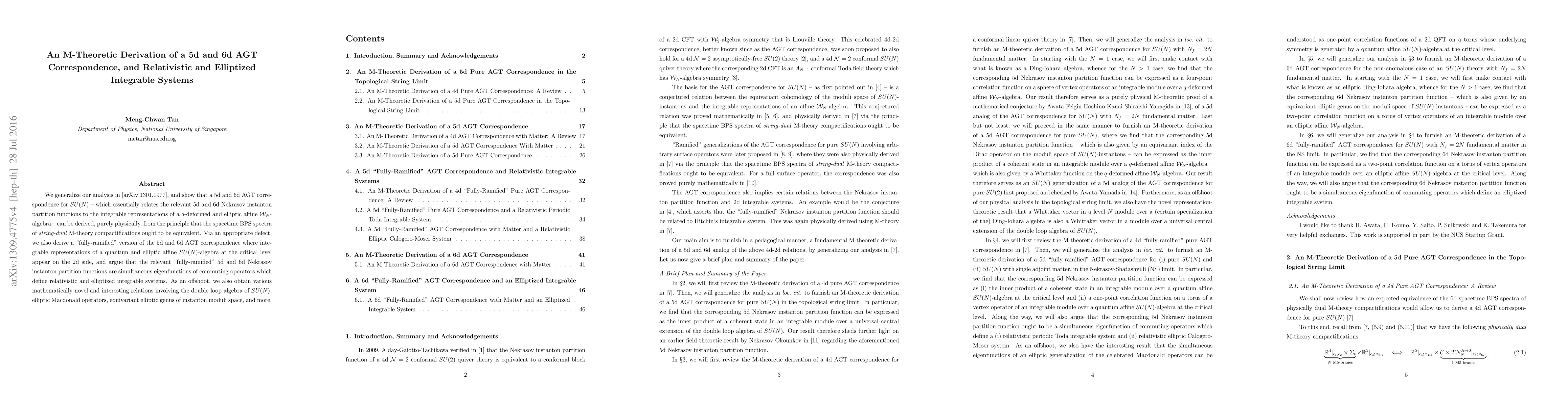 This paper generalizes the AGT correspondence to derive a 5d and 6d relationship for SU(N) based on M-theory compactification principles, showing that these correspond to integrable representations of q-deformed and elliptic affine W_N-algebra. It also introduces a "fully-ramified" version linked to relativistic and elliptized integrable systems.