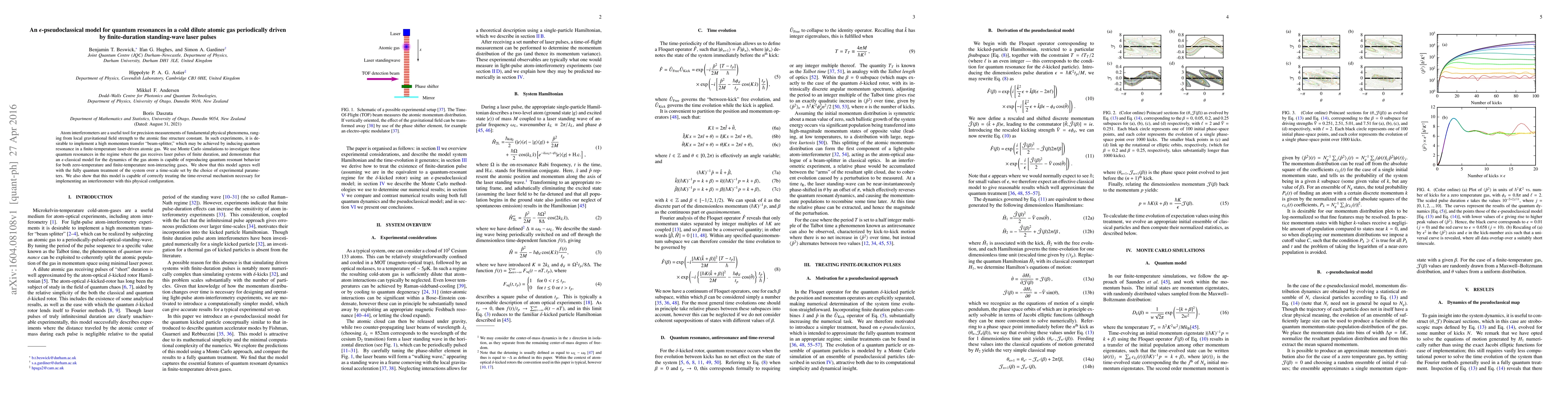 This research introduces an epsilon-pseudoclassical model to explain quantum resonances in cold atomic gases driven by finite-duration laser pulses, demonstrating its effectiveness in replicating quantum behavior for zero-temperature and finite-temperature non-interacting gases. The model also accurately captures time-reversal mechanisms crucial for atomic interferometer implementations.