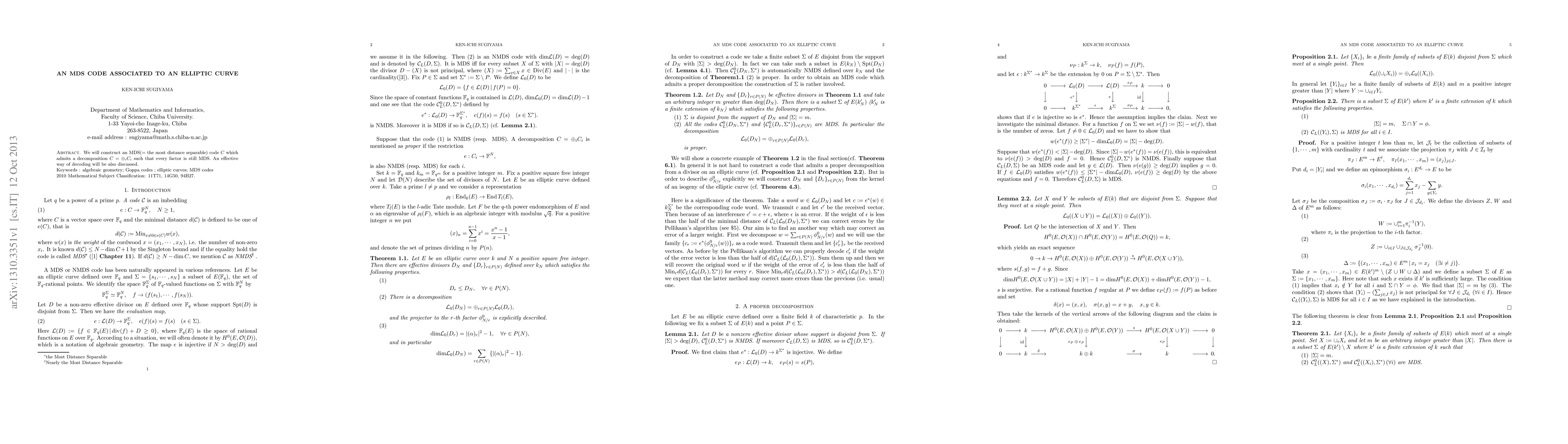 This paper presents a method to construct a special type of error-correcting code, MDS (Maximum Distance Separable), linked to an elliptic curve. It also discusses an efficient decoding strategy for this code.