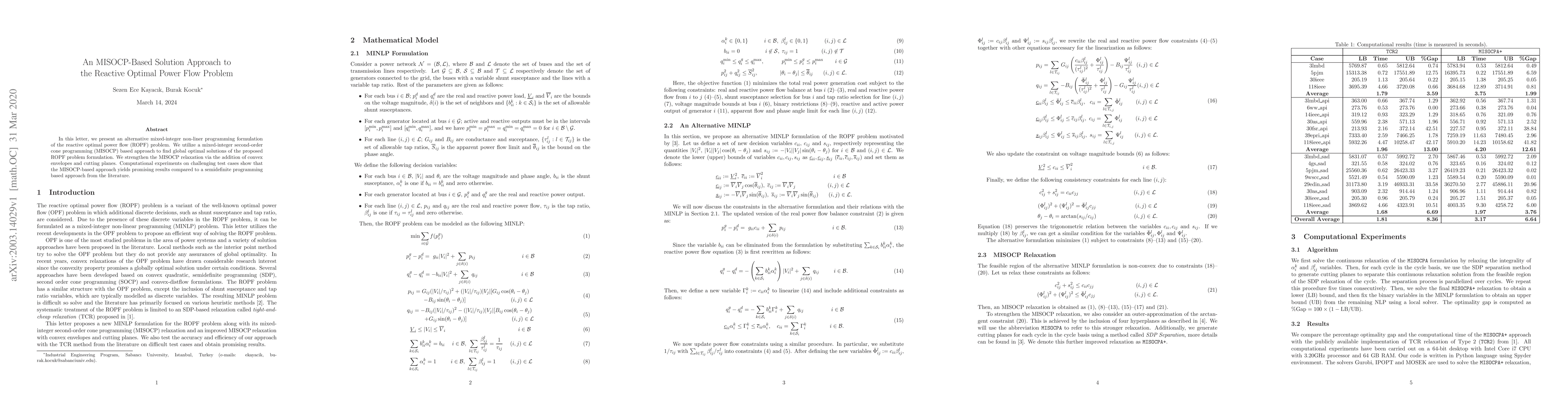 This paper proposes a mixed-integer second-order cone programming (MISOCP) formulation to solve the reactive optimal power flow (ROPF) problem, enhancing the approach with convex envelopes and cutting planes. Computational results indicate that the MISOCP-based method outperforms a semidefinite programming alternative.