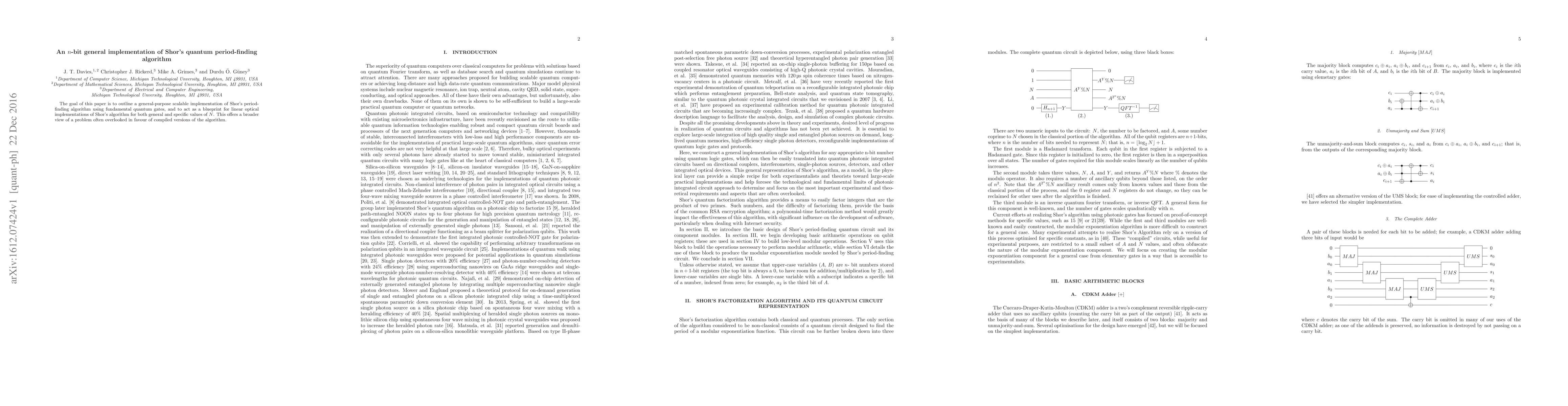 This paper presents a scalable, general-purpose implementation of Shor's quantum period-finding algorithm using fundamental quantum gates, aiming to provide a blueprint for linear optical implementations applicable to both general and specific values of N. It seeks to broaden the understanding of the algorithm beyond compiled versions.