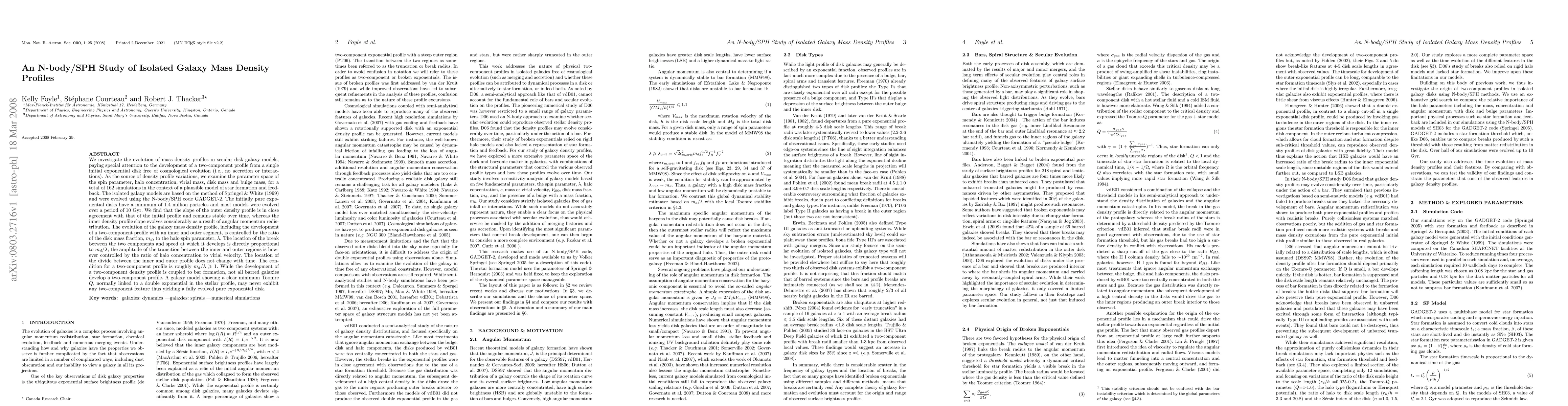 This paper studies the evolution of mass density profiles in isolated disk galaxies using N-body/SPH simulations, finding that the development of a two-component profile is primarily influenced by the ratio of disk mass to the halo spin parameter. The transition between inner and outer segments is also affected by the halo concentration relative to the virial velocity.