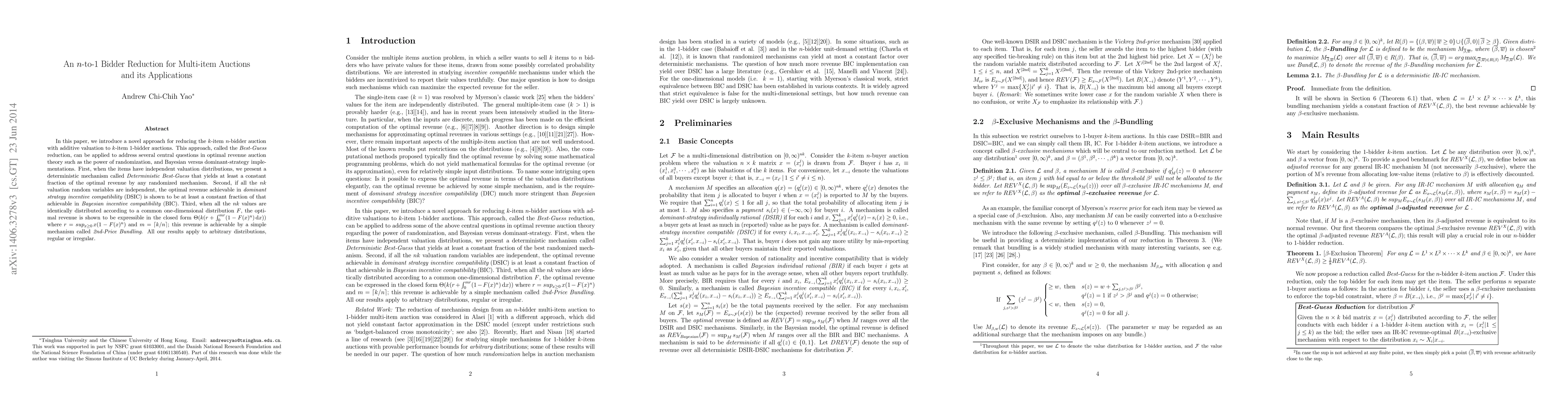 Researchers developed a method to reduce multi-item auctions with n bidders to single-item auctions with 1 bidder, achieving at least a constant fraction of the optimal revenue in some cases.